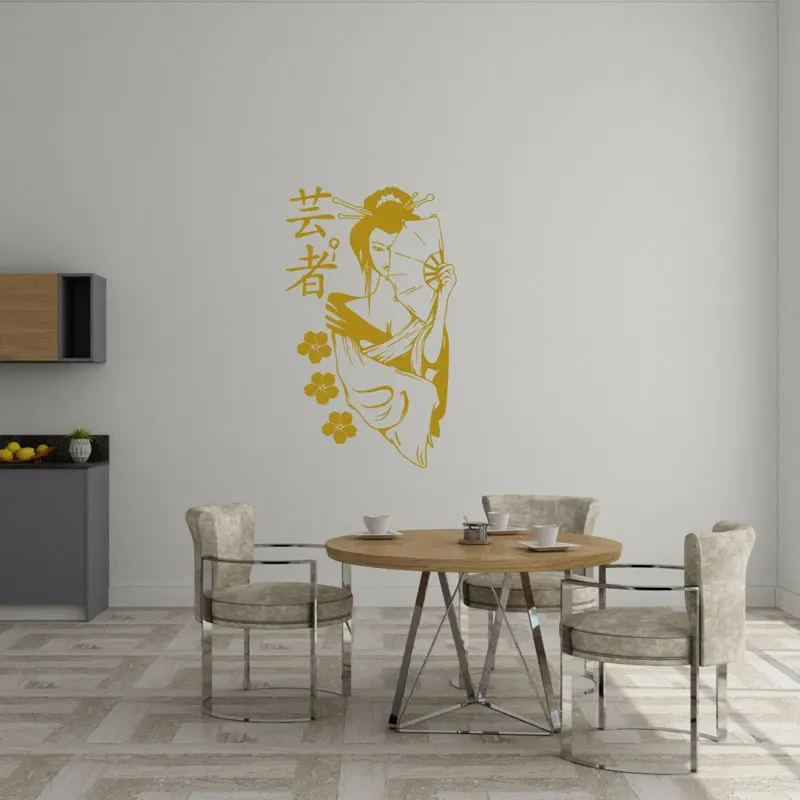 Виниловая наклейка на стену с изображением девушки гейши, украшение интерьера гостиной, спальни, стикер на стену, 3810