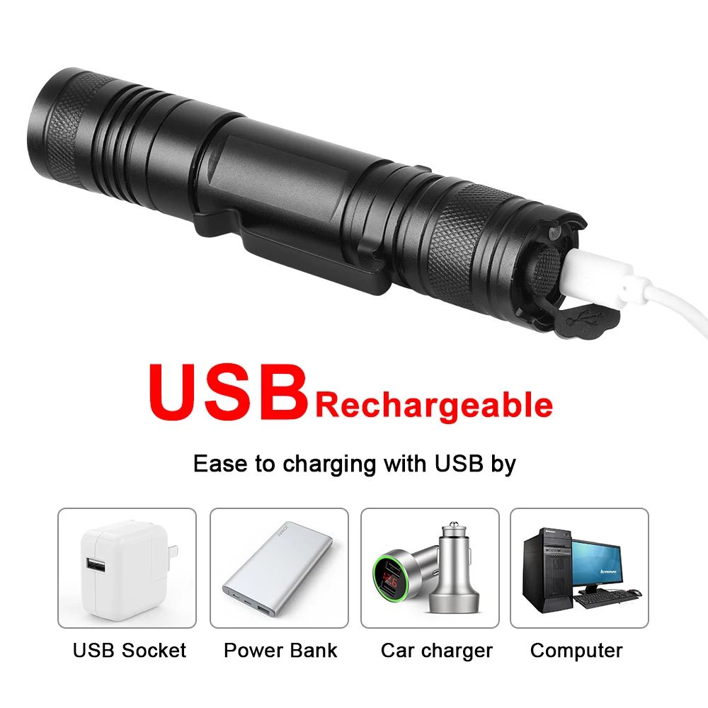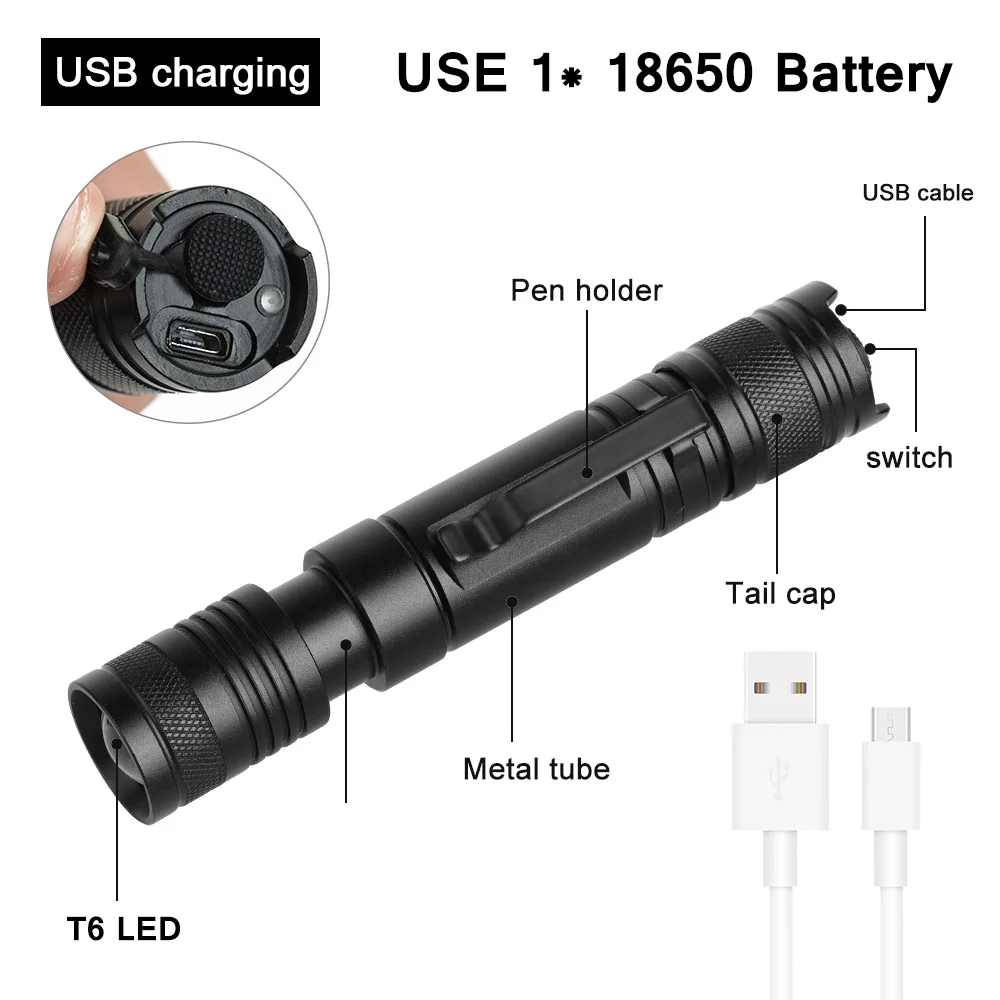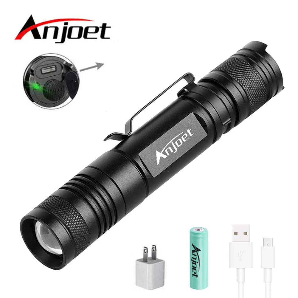 Anjoet Led T6 фонарик USB Перезаряжаемый тактический фонарь 18650 батарея фонарь Водонепроницаемый переносная лампа для кемпинга