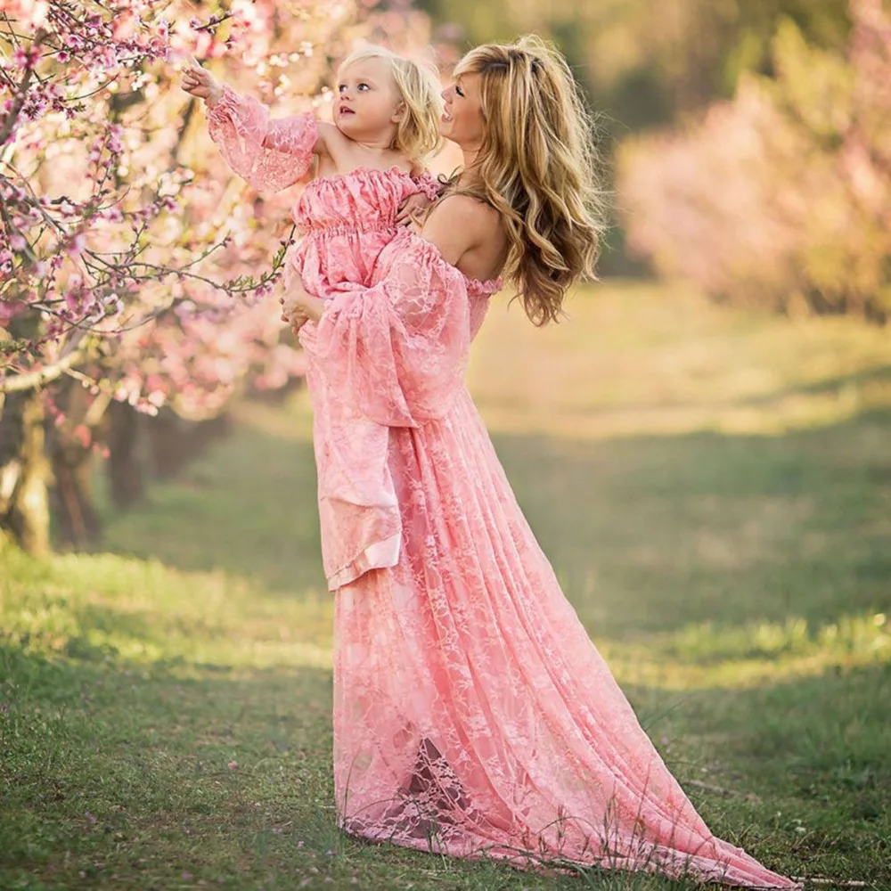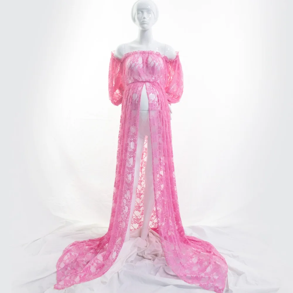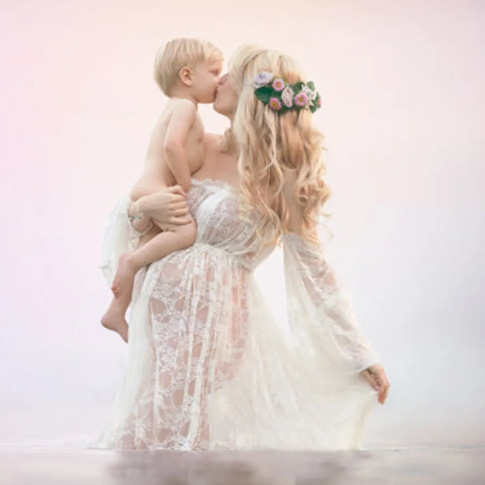Платье для беременных, кружевное, без бретелек, длинное, с разрезом спереди