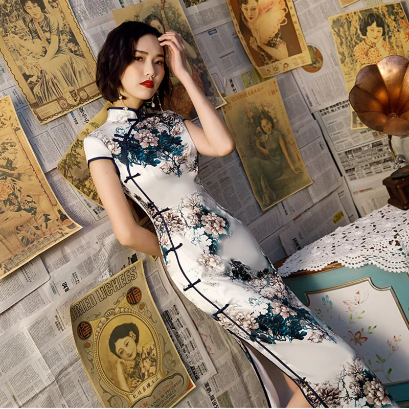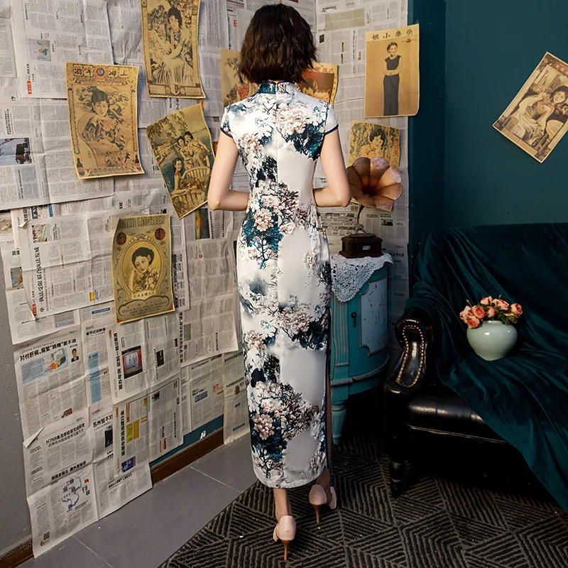 Китайское платье Ципао, длинное шелковое элегантное традиционное платье в китайском стиле, 13 цветов, размера плюс, 4XL