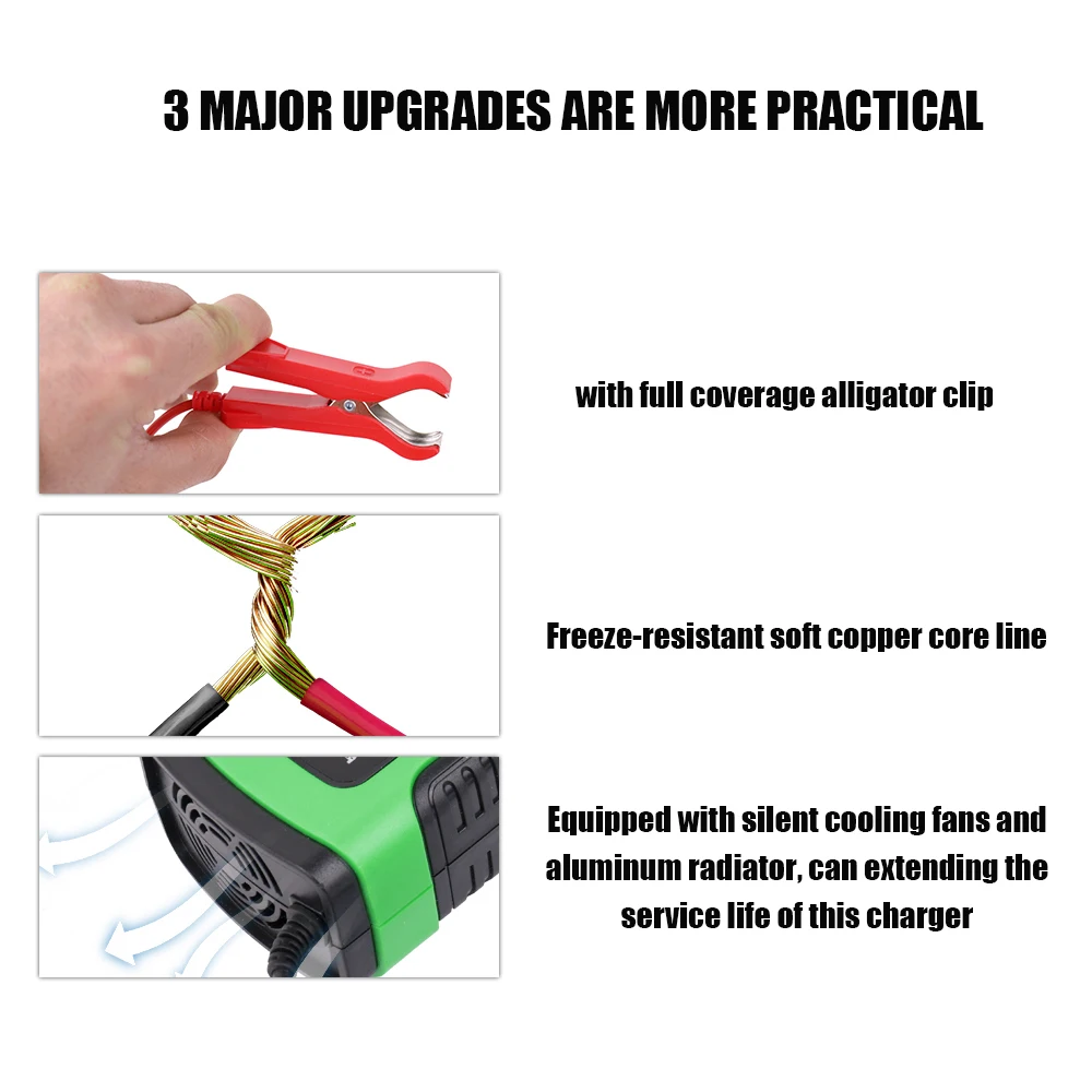 Особенности: Безопасная и надежная работа: зарядное устройство с несколькими безопасными защитой для обеспечения безопасного использования, оно имеет защиту от перенапряжения, защиту от перегрева, защиту от перезаряда, защиту от короткого замыкания, защиту от обратного подключения, защиту от перегрузки по току, И защита от низкого тока. 3 этапа зарядки: зарядка с постоянным током, зарядка с постоянным напряжением и поплавковая зарядка, которые подходят для большинства типов батарей, включая кальций, гель и AGM, влажные батареи. Низкий уровень шума и тепловыделение: бесшумный охлаждающий вентилятор работает с алюминиевым радиатором, что значительно продлевает срок службы зарядного устройства. Интеллектуальный цифровой дисплей: четкий ЖК-экран в режиме реального времени Отображение температуры, тока, напряжения и емкости аккумулятора. Гуманизированный режим зарядки: с летним и зимним режимом, это полностью автоматическое зарядное устройство может обнаруживать температуру и автоматически переключаться на соответствующее зарядное напряжение. Надежное качество: трансформатор из чистой меди имеет сильную мощность и стабильную выходную мощность для быстрой зарядки аккумулятора. И материал ABS огнестойкий, сопротивление изоляции и высокая термостойкость. Технические характеристики: Тип вилки: ЕС/США (опционально) Материал: АБС + медь + алюминий Входное напряжение: AC100-220V В переменного тока, 50/60 Гц, Max.75W Выходное напряжение: DC13.8-15.5V, Макс. 6А Батарея диапазон: 4-100Ah Размер товара: 150*90*65 мм/5,91*3,54 * 2.56in Вес изделия: 412 г/14,53 унций Вес упаковки: 455 г/16,05 унций Размер упаковки: 22*12*7 см/8,66*4,72 * 2.76in В комплект входит: 1 * импульсное зарядное устройство для ремонта Примечание: Не может использоваться для зарядки литиевой батареи.