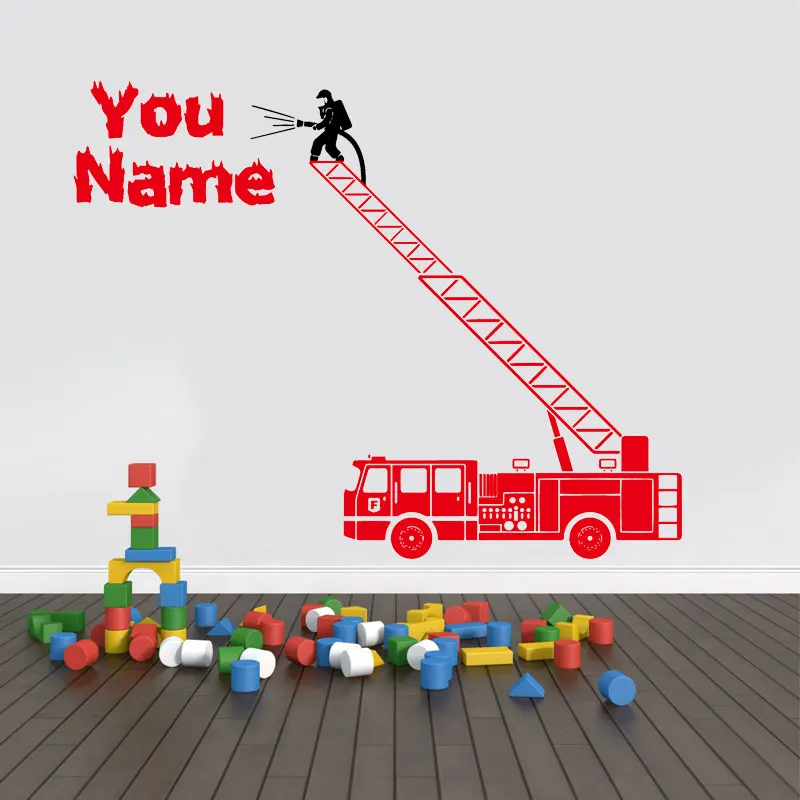 Персонализированная виниловая настенная наклейка с именем пожарного...