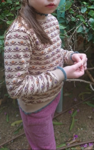 кофта очень красивая, размер в размер,сидит свободно,но на рост 128 рукава впритык,если хотите свободнее нужно заказывать 140, 7 это ростовка 130