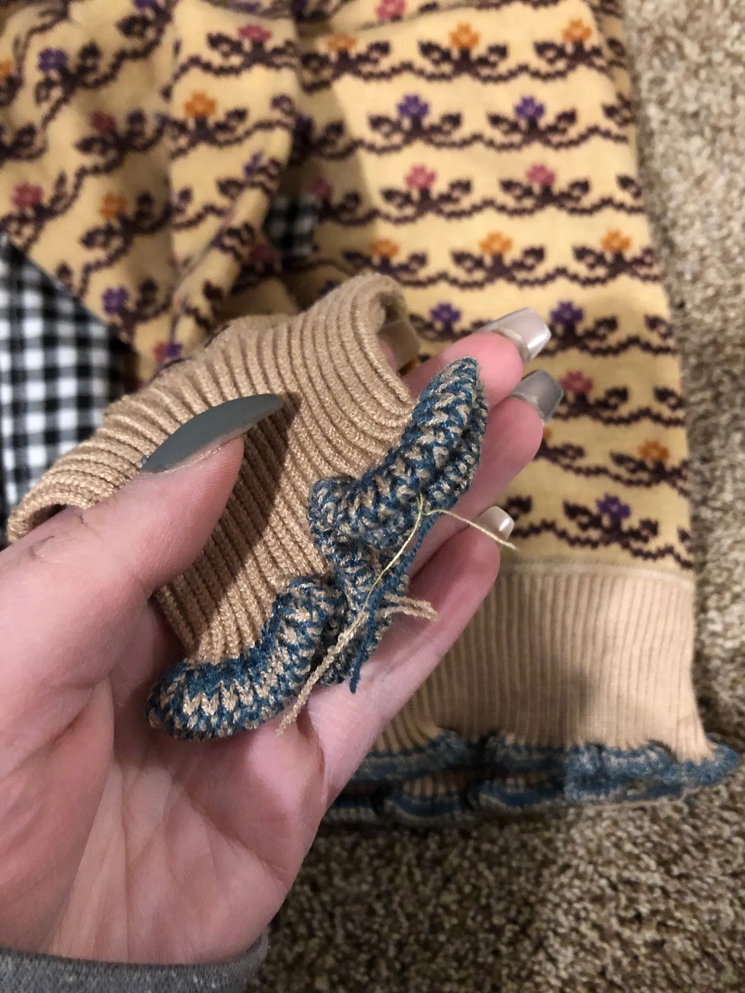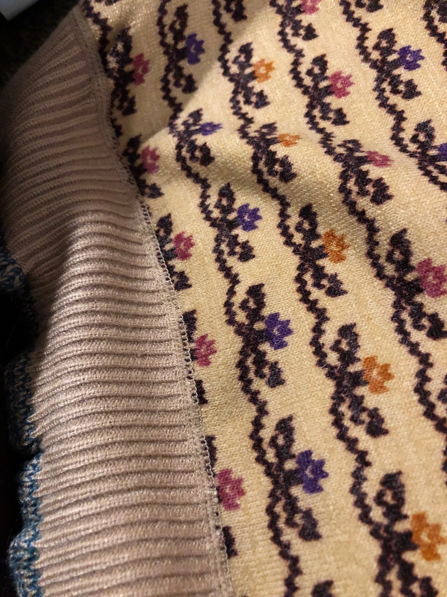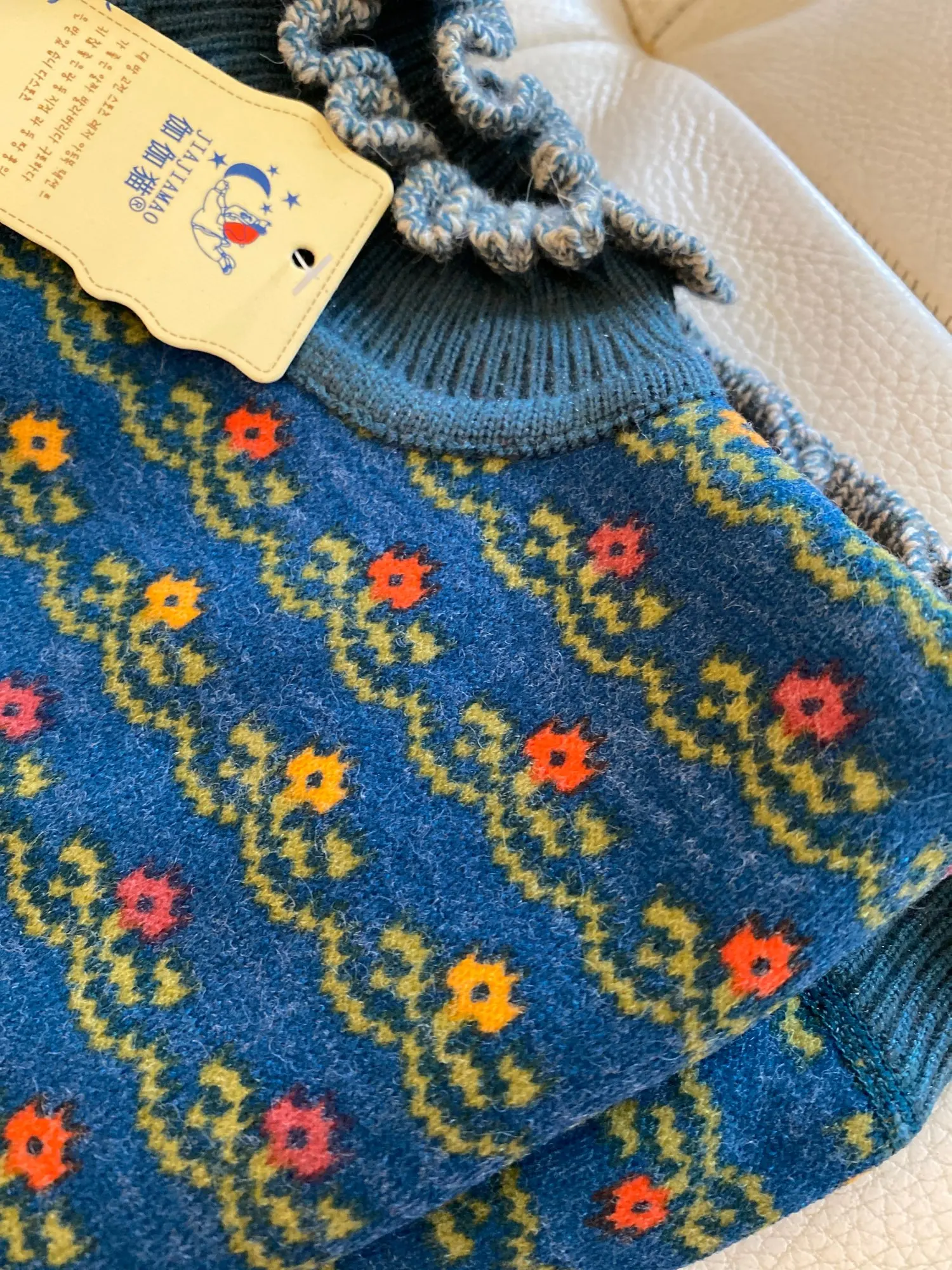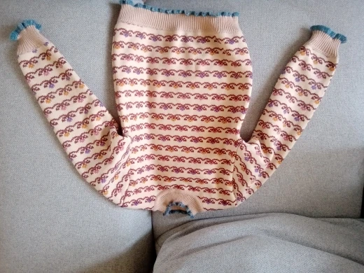 Внимание! Кофта нифига не вязаная! Она двуслойная. Верхний слой типа трикотажа с принтом аля-связано. А внутренний слой мягкий, пушистый. И в целом кофта замечательная, теплая и красивая. Просто не вязаная. Пришла быстро.