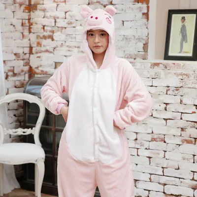 Кигуруми свинка с длинным рукавом с капюшоном, комбинезон, женская пижама kugurumi, взрослая, цельная фланелевая теплая пижама в виде животного