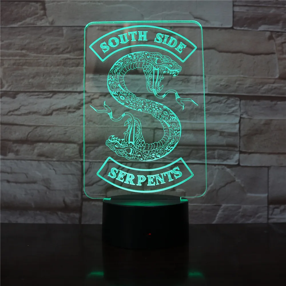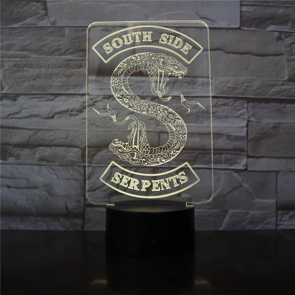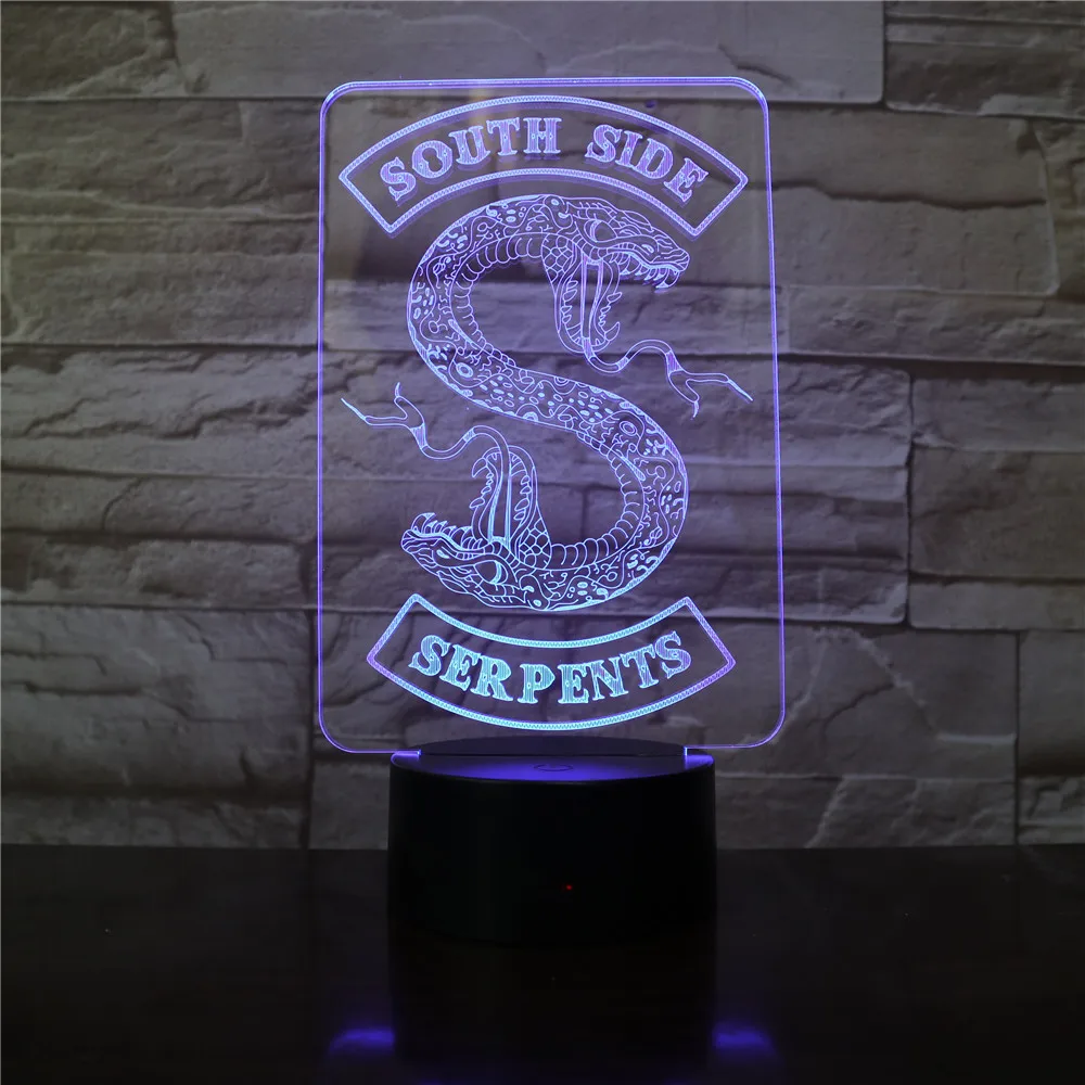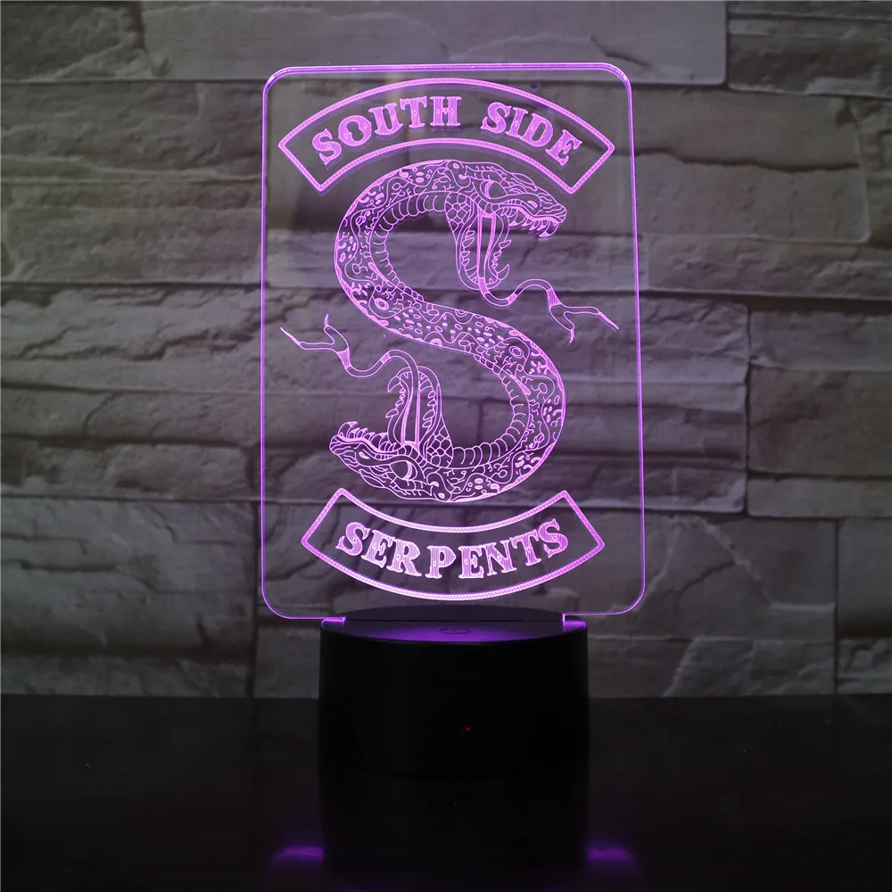 Значки речной Змеи Логотип 3D светодиодный Ночник светильник саутсайд змеи вывеска для декора вещей ревердейл аксессуары настольная лампа цветной подарок