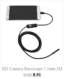 Высокое разрешение с Камерой CMOS 1/9. Встроенный 6 светодиодных ламп (с яркостью и контролем фото) Водонепроницаемый проводной эндоскоп. С Головкой камеры 7 мм. Фотосъемка и запись видео. Внешний диаметр головки камеры: 5,5 мм. Пиксели: 300000 пикселей на телефоне, 1300000 пикселей на компьютере Разрешение: 640*480,1280*480 (только на компьютере) 30 ftps. Светодиод: 6 белых светодиодных ярких ламп. Фокусное расстояние: 5 см-infinate. Уровень водонепроницаемости: IP67. Системы поддержки: для Android/для Windows 2000/для XP/для Vista/Для 7. Температура:-20 ~ 100C. Длина кабеля: 1 м/1,5 м/2 м/3,5 м/5 мВ комплект входит: