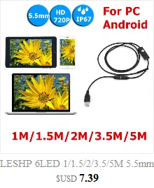 LESHP 6 светодиодный 11.523.55 м 5,5 мм объектив эндоскопа Водонепроницаемый IP67 инспекциионный бороскоп для Android ПК мини Камера 6 светодиодный светильник USB