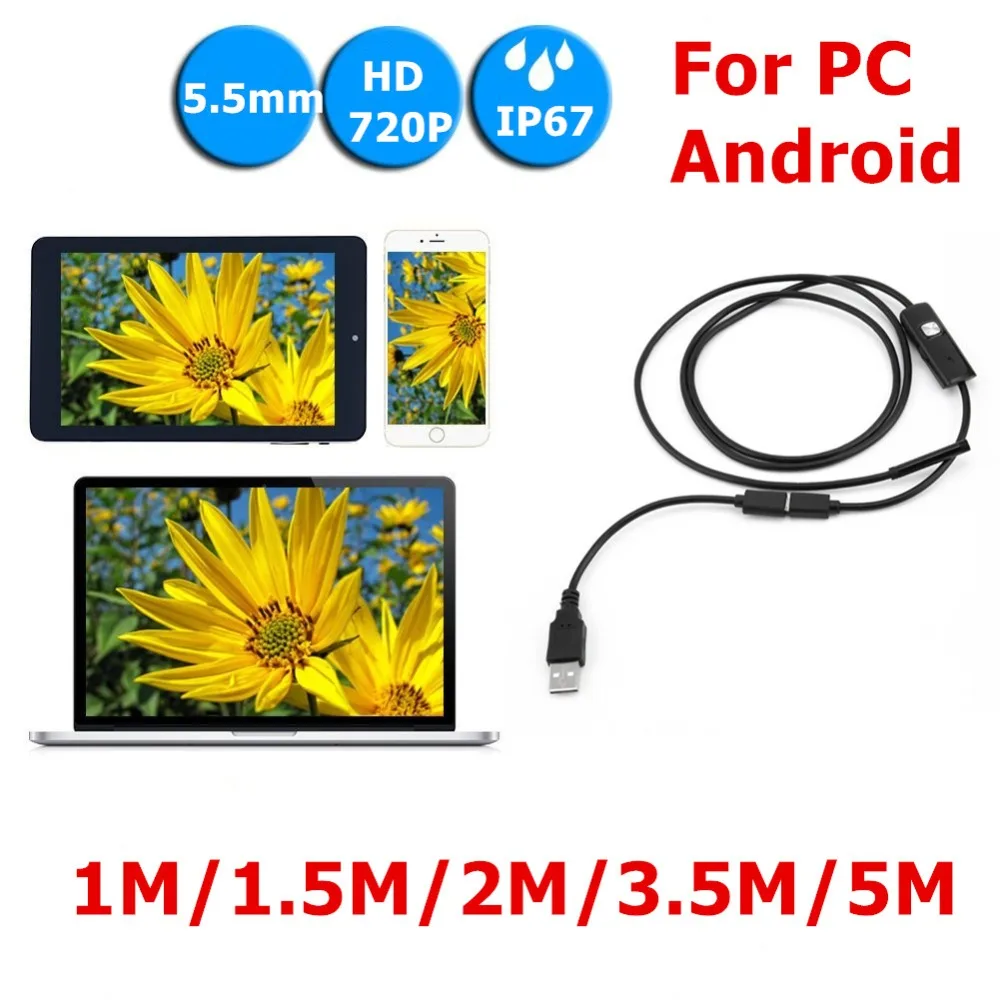 6 светодиодов 5,5 мм объектив 1/1. 5/2/3. 5/5 м эндоскоп водонепроницаемый осмотр бороскоп для камеры Android Фокус объектив USB Кабельный эндоскоп