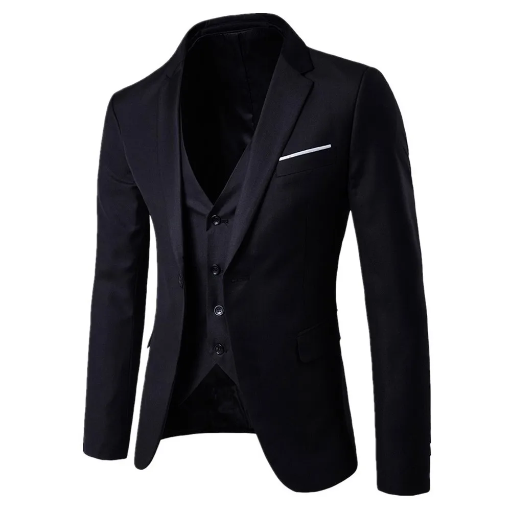 Мужской костюм из трех предметов, блейзер, Деловой, свадебный пиджак, жилет и брюки, модная верхняя одежда, офисный, вечерний, тонкий мужской костюм #45