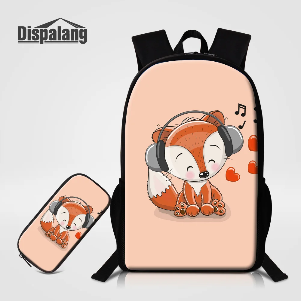 Girl Cute Cartoon Fox Unicorn Pig Printing School Backpacks 2 PCS School Bags Set Pencil Case For Student Women's Travel Bagpack
