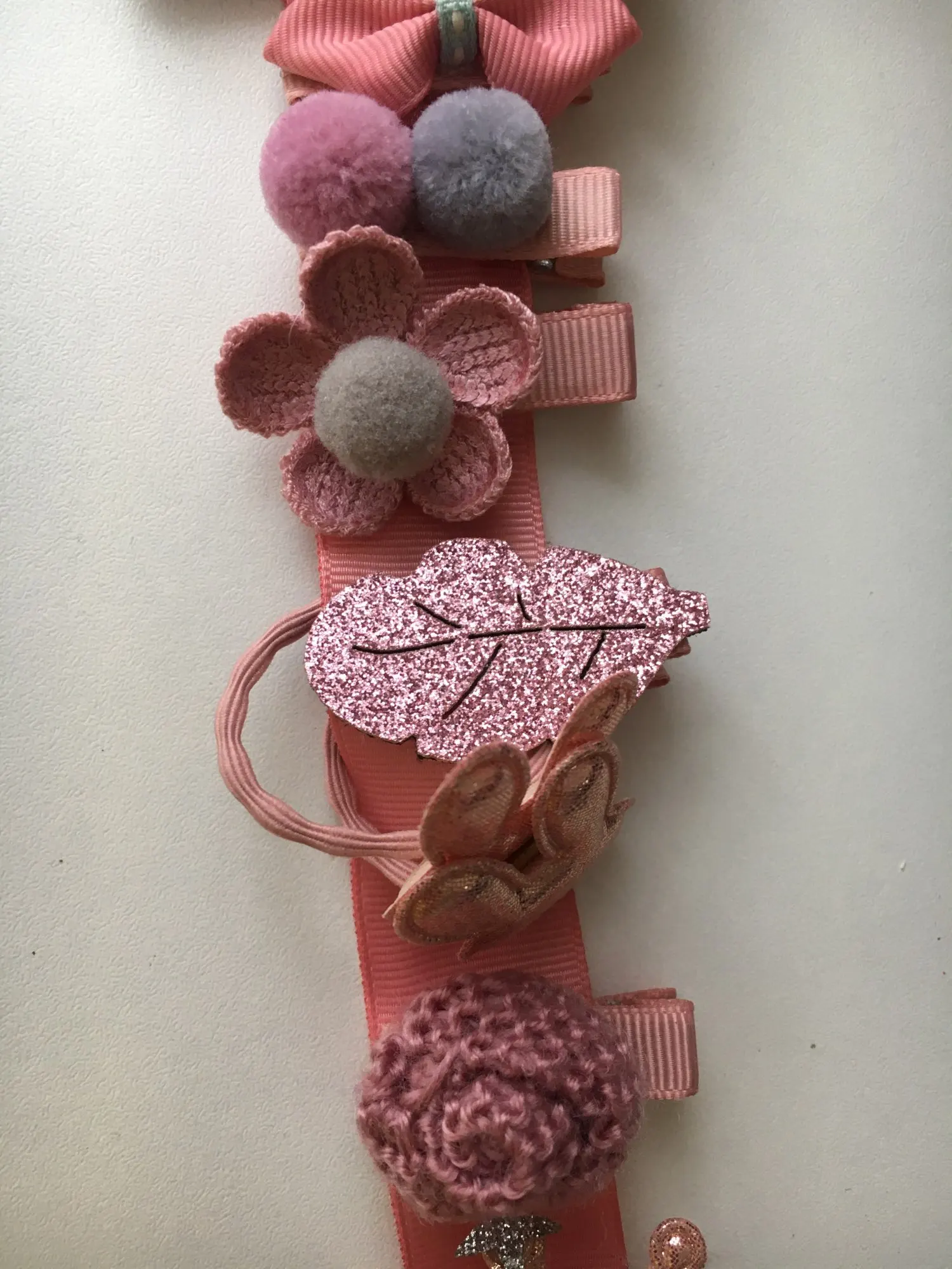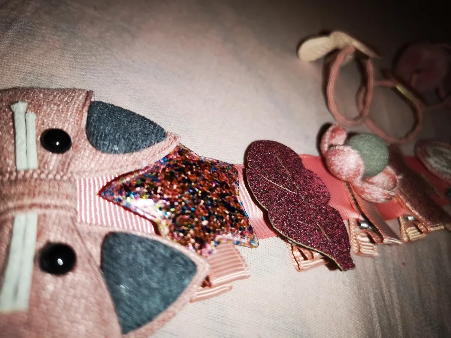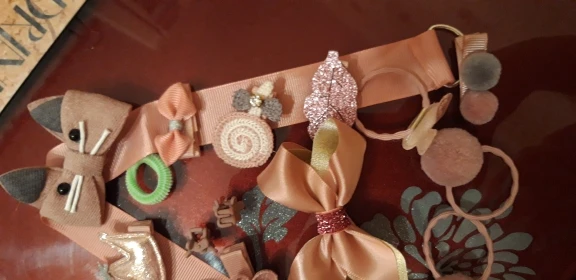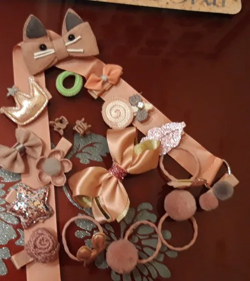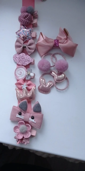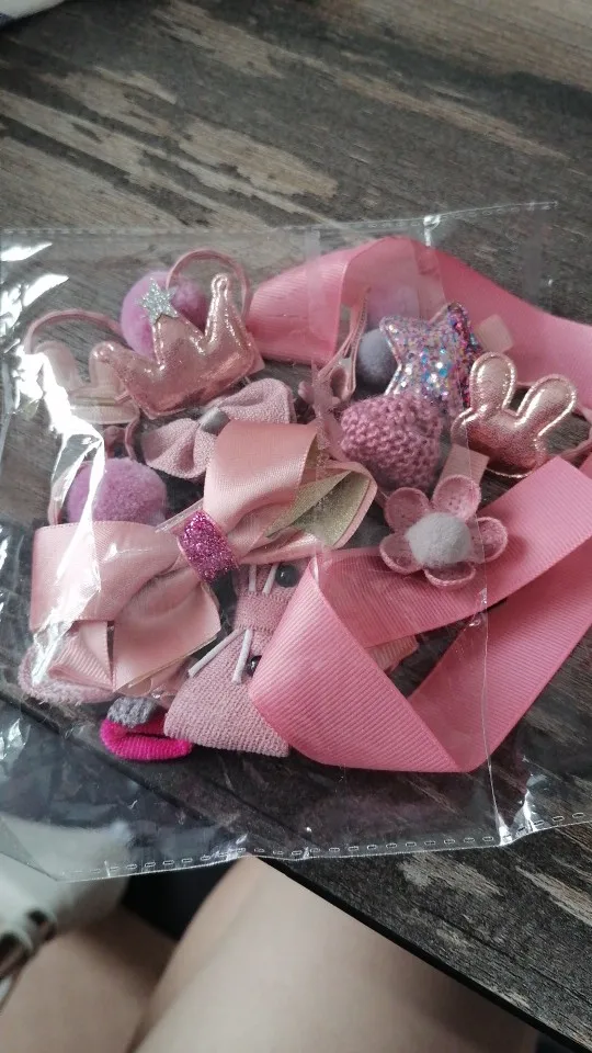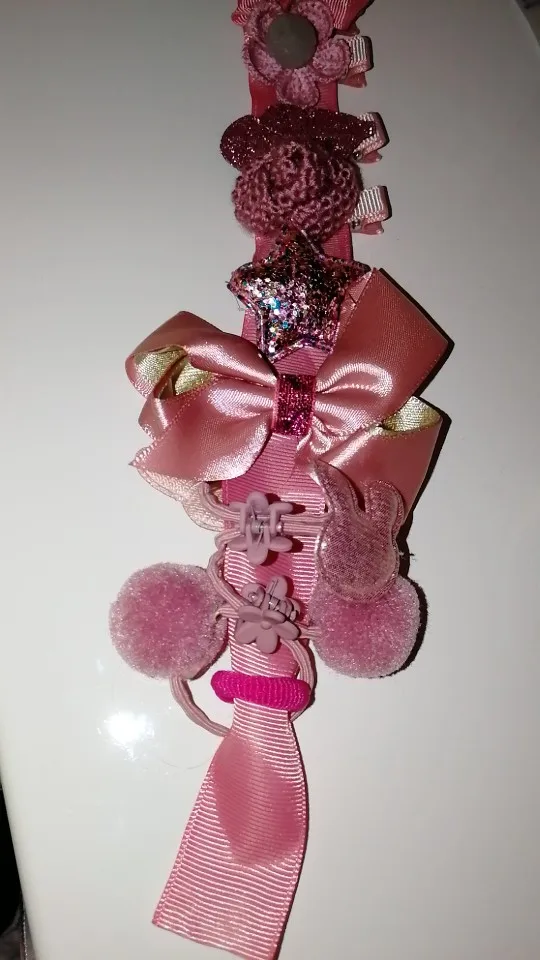 Получили всё очень быстро, качество супер, нет ни следов клея, ни торчащих ниток.. Подойдет как для совсем маленькой девочки(у нас доченька 2 года с короткими волосами), так и для девочек постарше (старшей 7 лет и длинные густые, волосы) - заколочки держаться хорошо, резинки не сползают. В подарок пришла ещё 1 ярко розовая.. Ленточка просто супер, широкая качественно сделаная, не атласная. Для хранения заколочек, теперь думаю так сделать все что у нас есть, удобно хранить и сразу видно где какаЯ:)! ВООБЩЕМ Я В ВОСТОРГЕ, ЭТО ПЕРВАЯ НАША ПОКУПКА НА АЛИ. По такой цене у нас в городе столько резинок/заколок не купить точно!