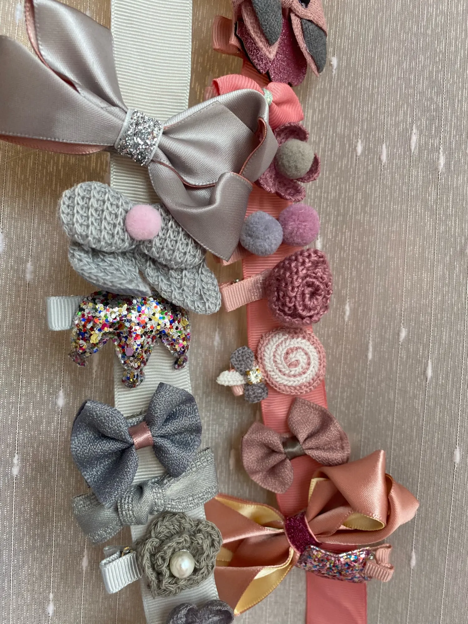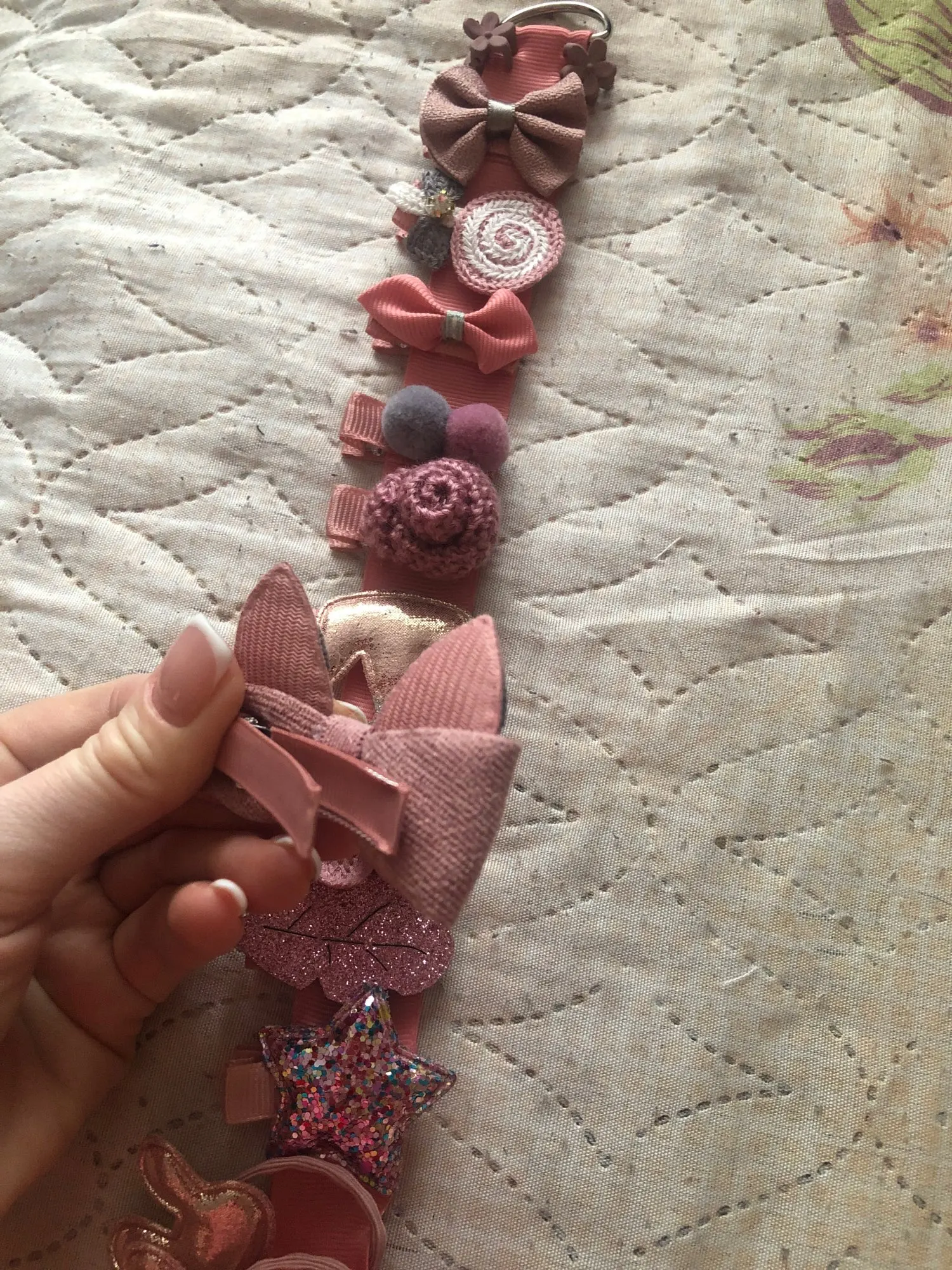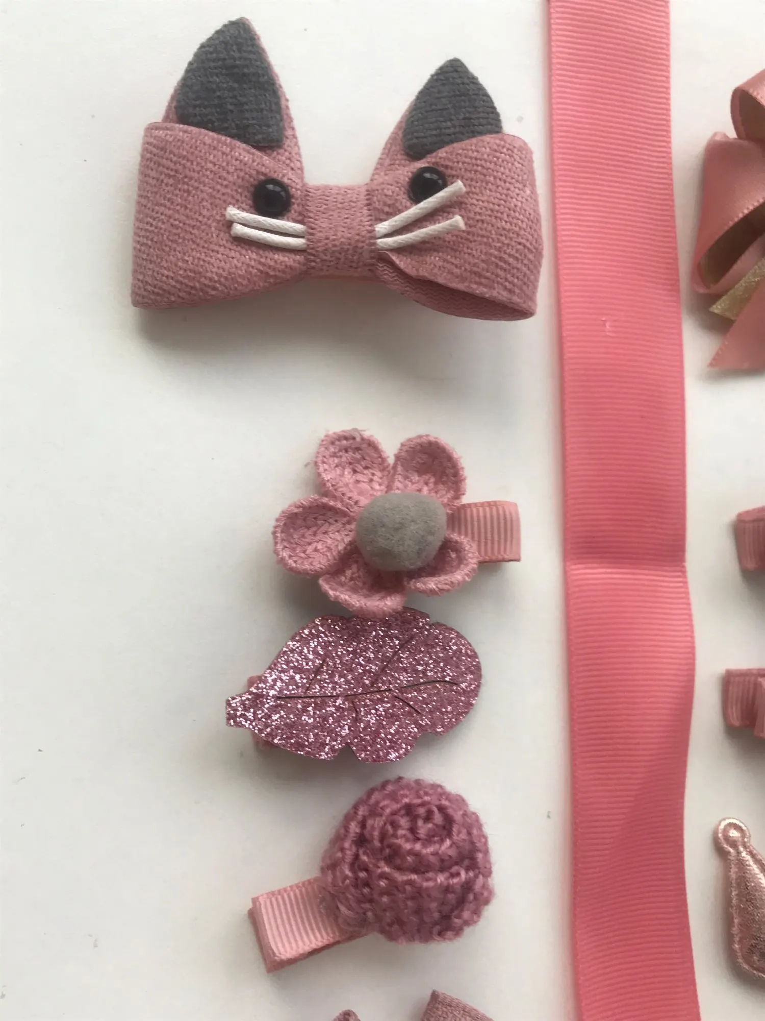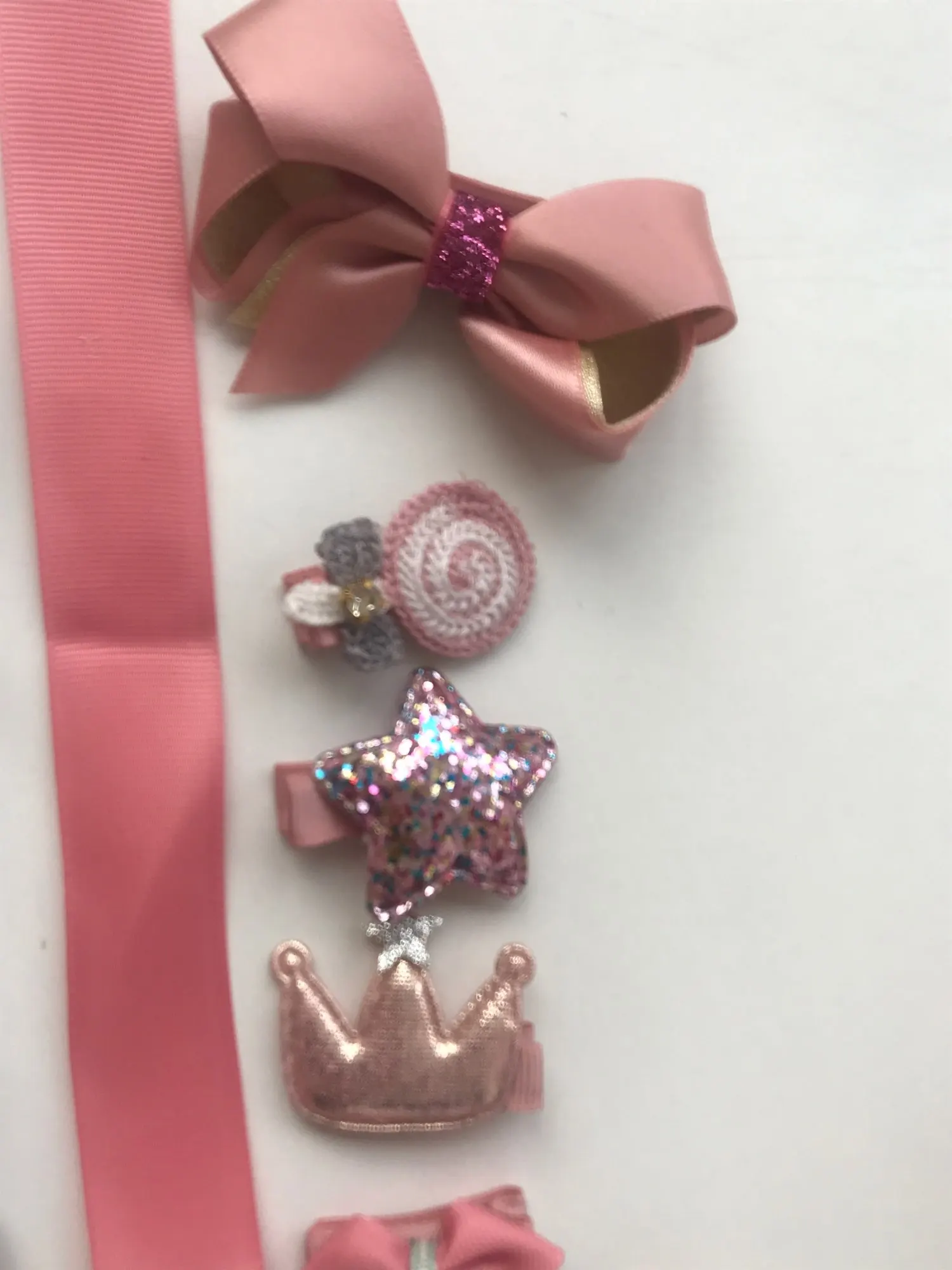 Получили всё очень быстро, качество супер, нет ни следов клея, ни торчащих ниток.. Подойдет как для совсем маленькой девочки(у нас доченька 2 года с короткими волосами), так и для девочек постарше (старшей 7 лет и длинные густые, волосы) - заколочки держаться хорошо, резинки не сползают. В подарок пришла ещё 1 ярко розовая.. Ленточка просто супер, широкая качественно сделаная, не атласная. Для хранения заколочек, теперь думаю так сделать все что у нас есть, удобно хранить и сразу видно где какаЯ:)! ВООБЩЕМ Я В ВОСТОРГЕ, ЭТО ПЕРВАЯ НАША ПОКУПКА НА АЛИ. По такой цене у нас в городе столько резинок/заколок не купить точно!