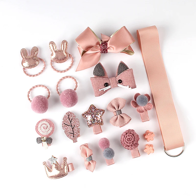 Набор заколок для волос, 18 шт., милые аксессуары для волос для девочек, мультяшная заколка для волос, головной убор, бант, цветок, животные, заколка для волос, эластичный головной убор