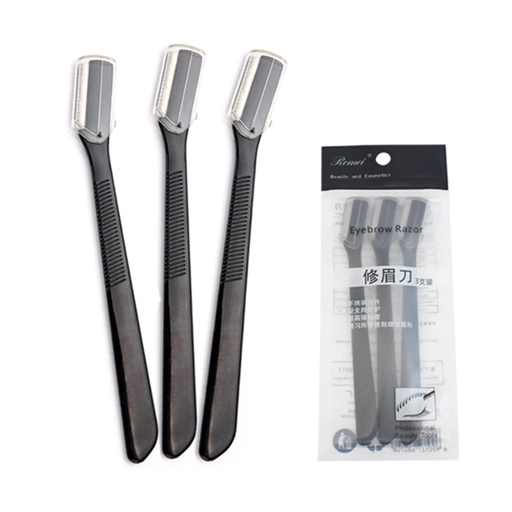 3 шт.компл. триммер для бровей, средство для удаления волос на лице, Женская бритва для бровей, безопасный формирователь бровей с крышкой, черная косметика