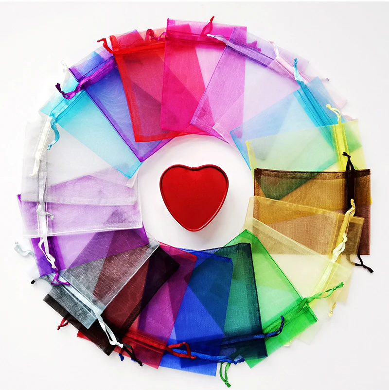 20 шт.лот разноцветные подарочные пакеты из органзы, прозрачные сет...