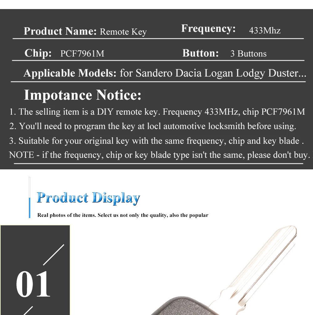 Пульт дистанционного управления jingyuqin с чипом PCF7961M HITAG AES для Renault Sandero Dacia Logan Lodgy Dokker Duster 433 МГц VAC102 HU136te