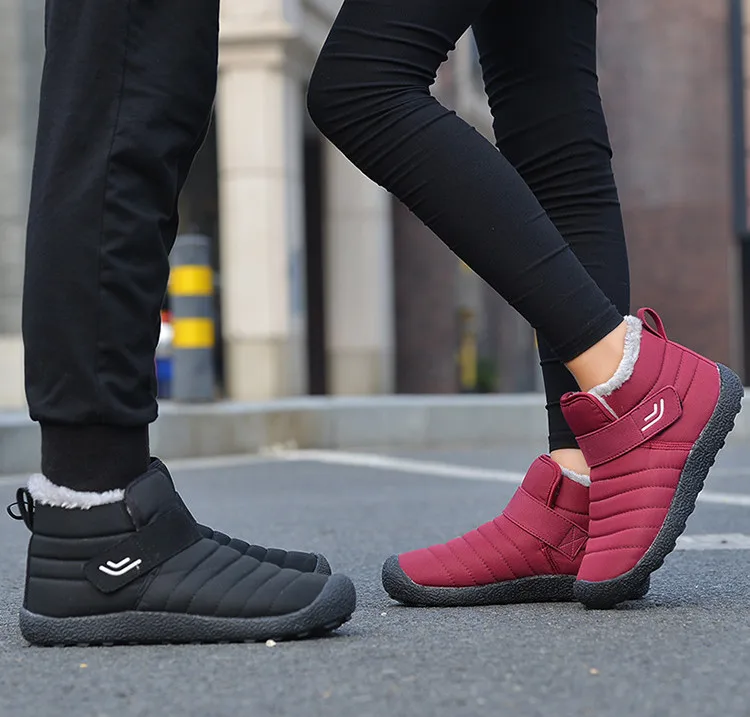 Зимние ботинки, теплые мужские ботильоны на липучке, Уличная обувь, водонепроницаемые Нескользящие кроссовки, мужские повседневные модные короткие плюшевые ботинки на плоской подошве
