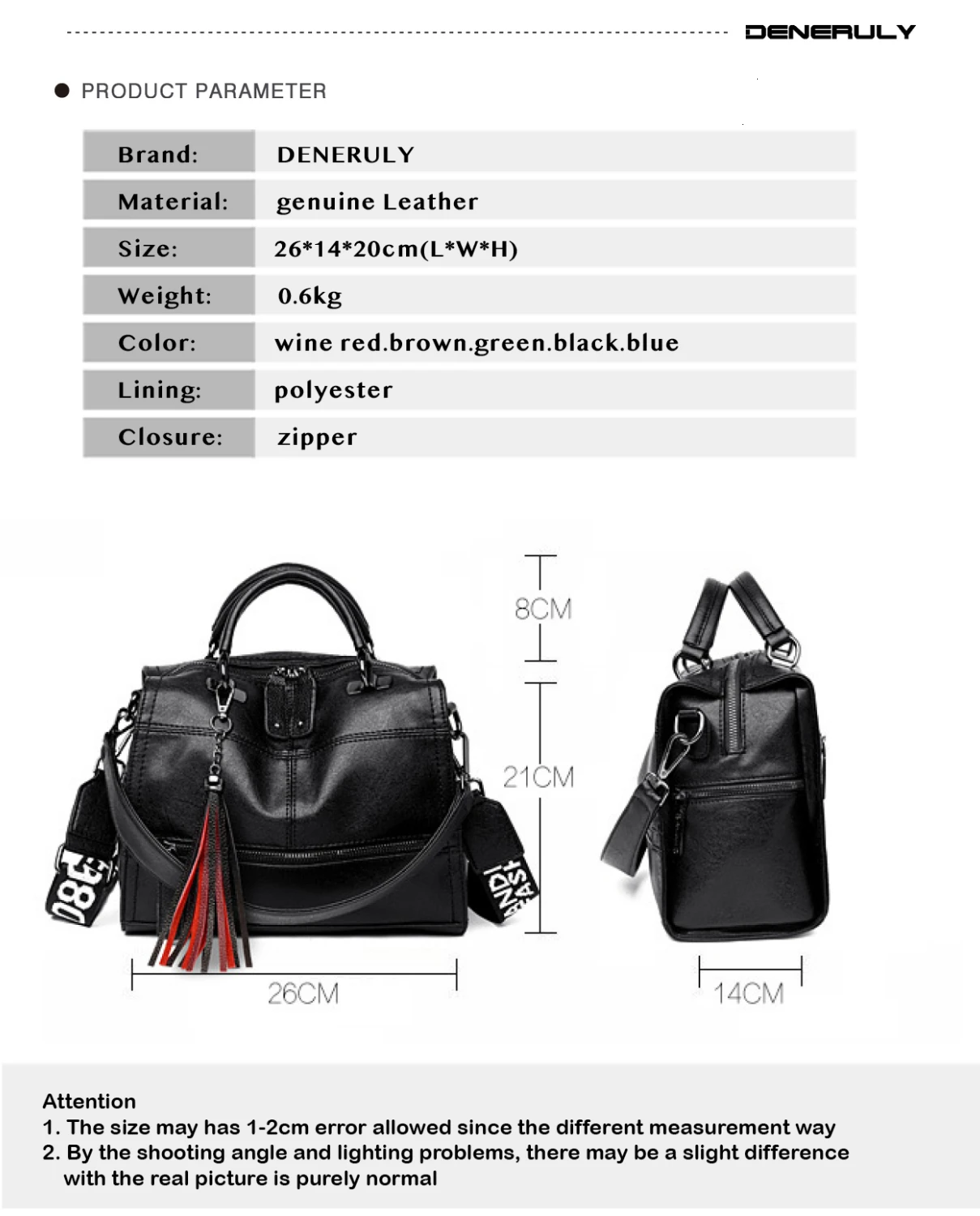 Бренд: DENERULY Внешний материал: натуральная кожа Внутренний материал: высококачественный полиэстер Цвет: винно-красный, коричневый, зеленый, синий, черный Размер: длина 10,2 * ширина 5,5 * высота 7,9 (дюйм) Подарок: магазин и заказ получат дополнительные подарки, все товары получат дополнительные предложения]
