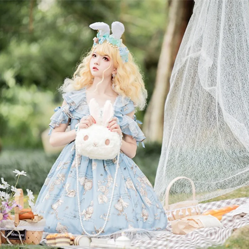Сумка в виде кролика Лолиты, плюшевая, с оригинальным дизайном, с жемчужной цепочкой, сумка-мессенджер, кукла, милая Лолита, сумка на плечо для мамы