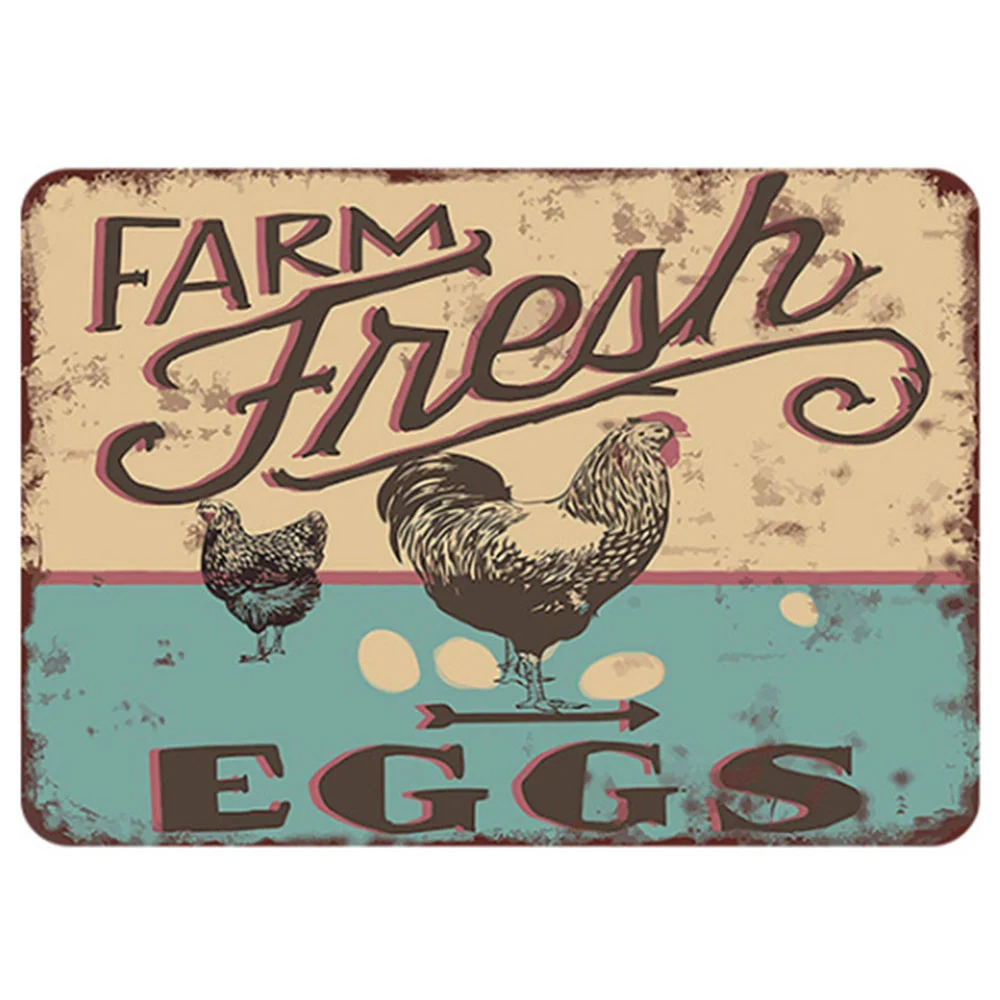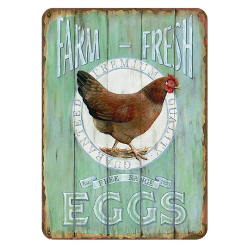 Старинная металлическая Оловянная пластина в стиле ретро с изображением свежих яиц на ферме, классическое железное украшение для стен