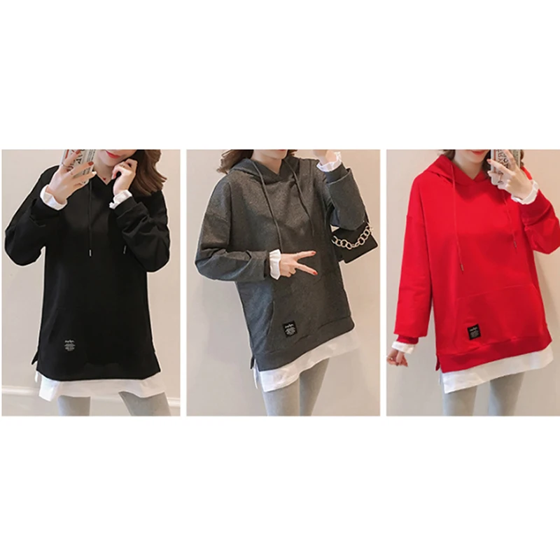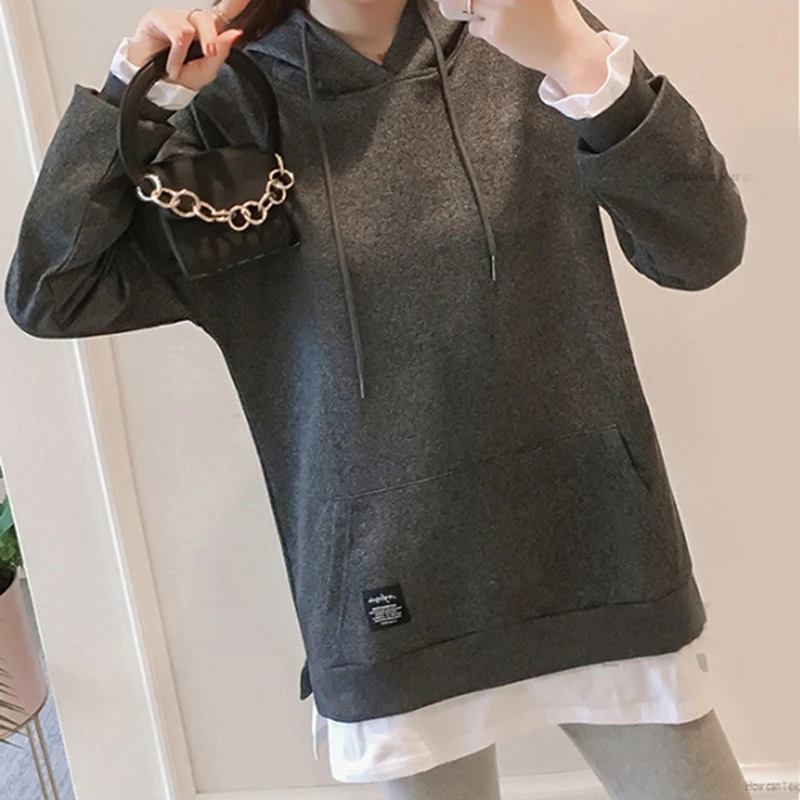 Harajuku Длинная толстовка женская толстовка толстовки для женщин топы корейские толстовки корейские Поддельные двухсекционные Платья С Капюшоном