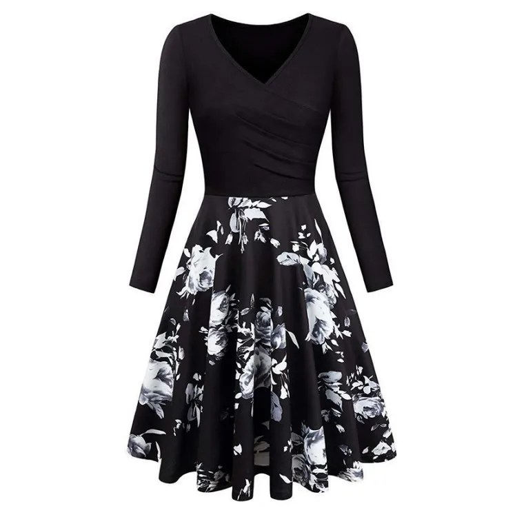 4XL повседневные осенние платья для женщин 2021 новые женские часы с цветочной печатью платье 50-х 60-х винтажное повседневное расклешенное платье размера плюс Vestidos