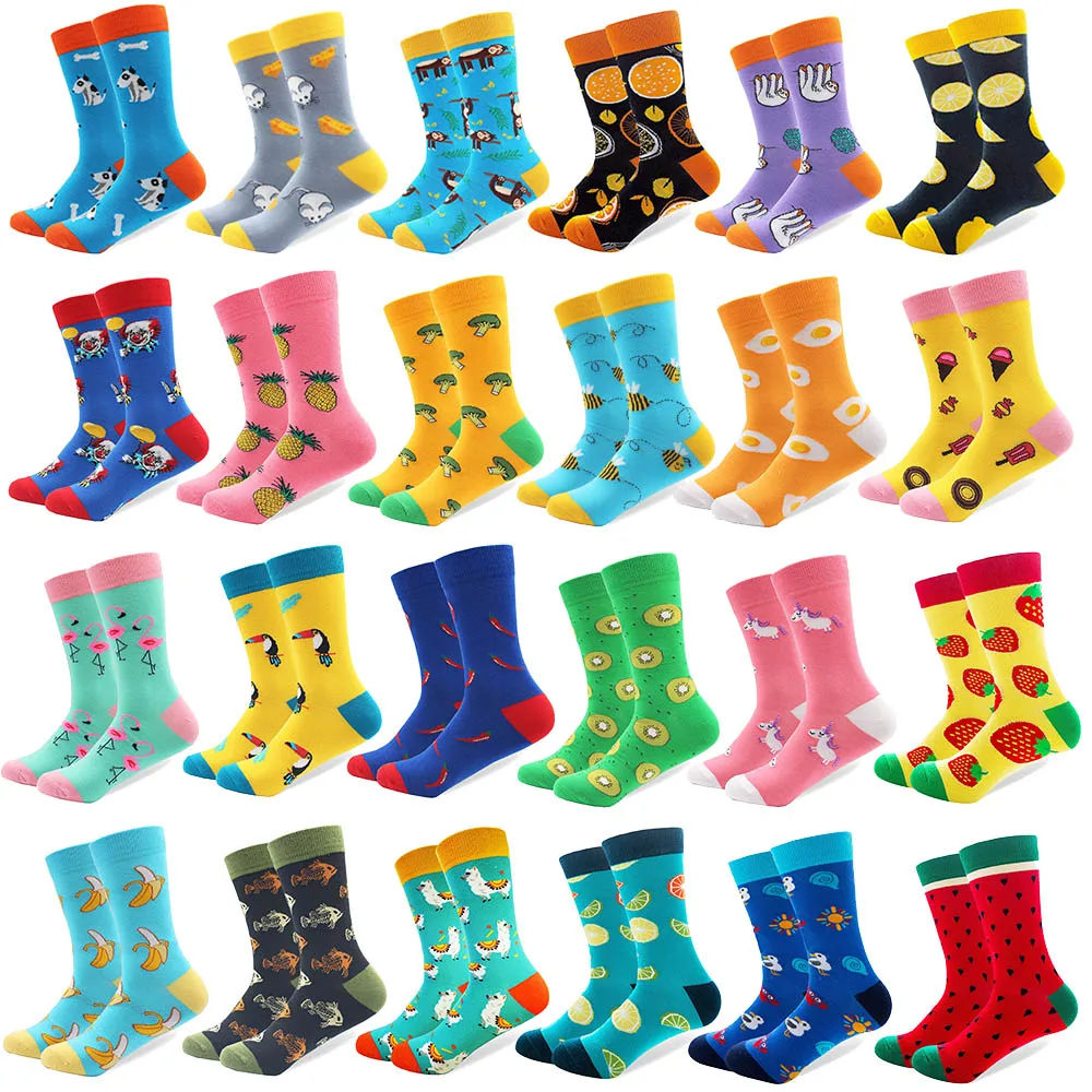 Оптовая продажа, творческие мужские цветные носки из чесаного хлопка с принтом фруктов, 20 партЛот, счастливые носки, свадебный подарок, повседневные сумасшедшие забавные носки