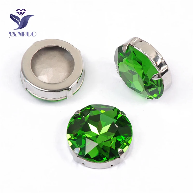YANRUO 1201 27 мм Перидот Круглые Необычные камни серебро и золото коготь точка настройки сзади Стразы Кристалл Стразы для платья