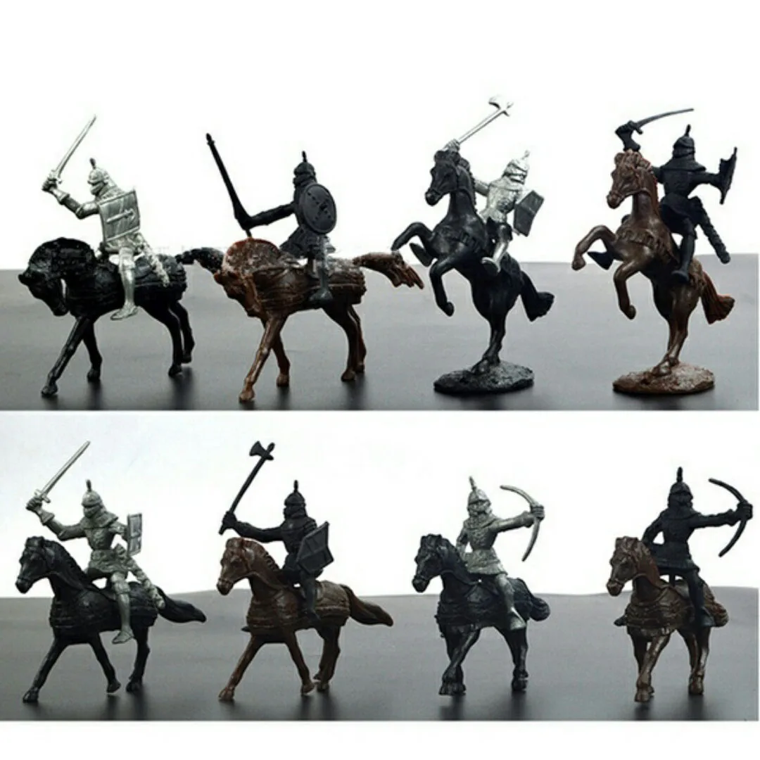 Игрушечные фигурки для детей, 28 шт.компл., средневековые рыцари, воины, лошади, статическая модель, игровой набор, играющий на песчаных замках (20 солдатиков + 8 лошадей)