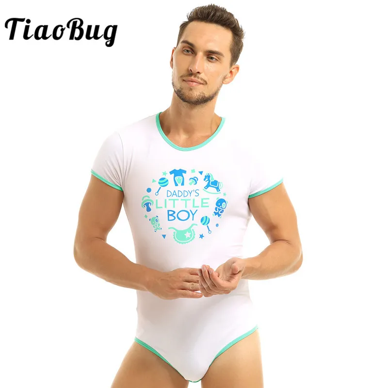 TiaoBug Мужской Цельный подгузник, для взрослых, для детей, для влюбленных, короткий рукав, кнопка нажатия, с надписью, Мужское боди, комбинезон, Пижама