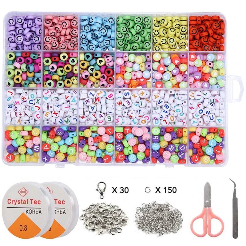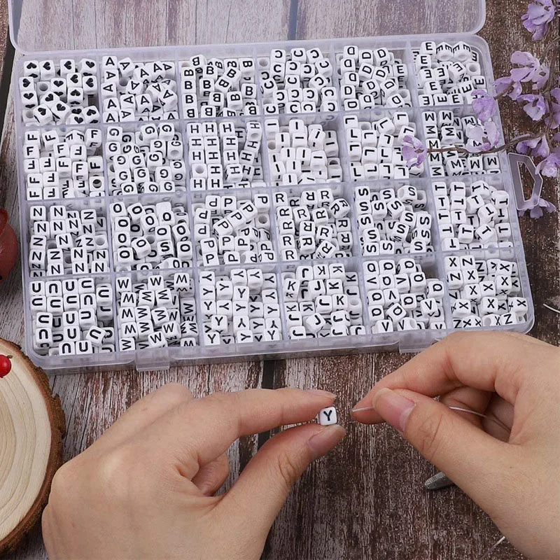 Набор круглых акриловых бусин с английскими буквами, набор инструментов для изготовления браслетов и украшений сделай сам, аксессуары для изготовления квадратных пластиковых пазлов, бусы с алфавитом, коробка