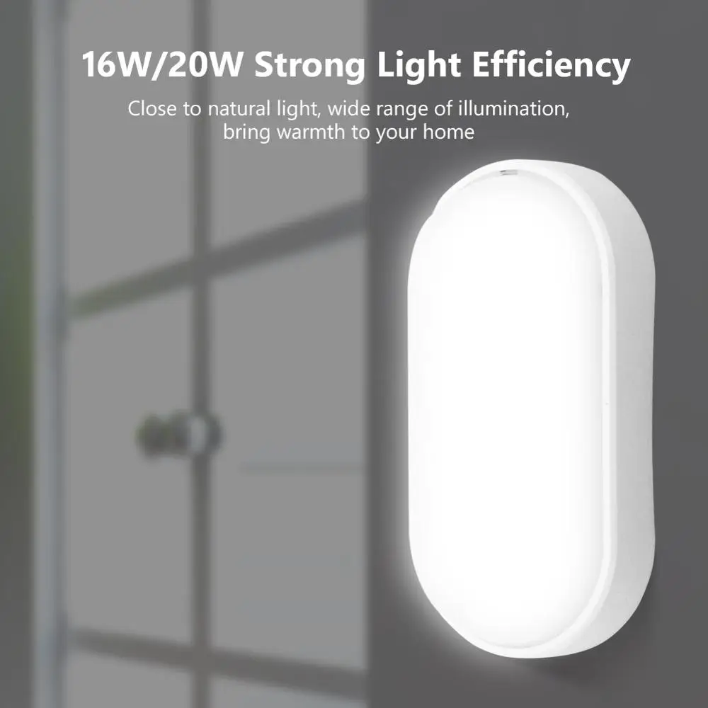 Светодиодный влагозащищенный потолочный светильник IP65, водонепроницаемый круглый овальный светодиодный светильник для сада и ванной, 16 Вт 20 Вт
