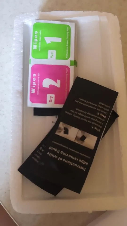 Пришло 2 стекла как и заявлено, но, одно стекло даже и не клеялось, со вторым все нормально. По краям у экрану не приклеивается, проливали масло или жидкость, которая в комплекте идёт, пустоту не видно стало, но через несколько дней жидкость испарилась и пыль и мусор начали забиваться туда