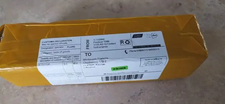 Товар получен. Соответствует описанию. Реагирует на металлы, очень громкий сигнал. На разный металл разный звук. Доставка в течение недели.