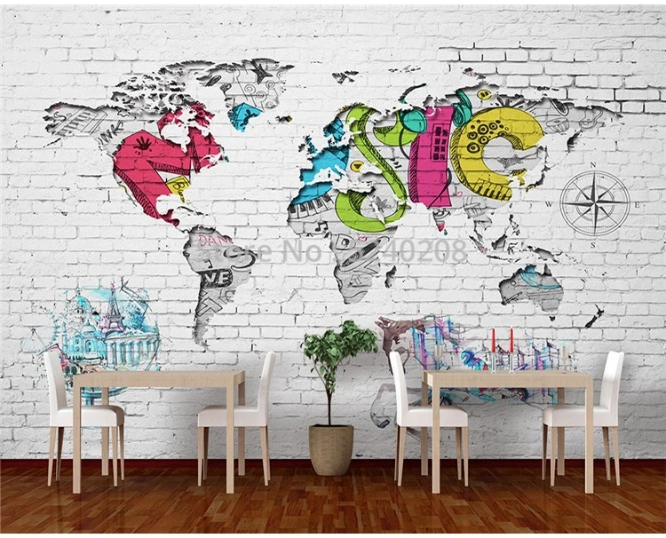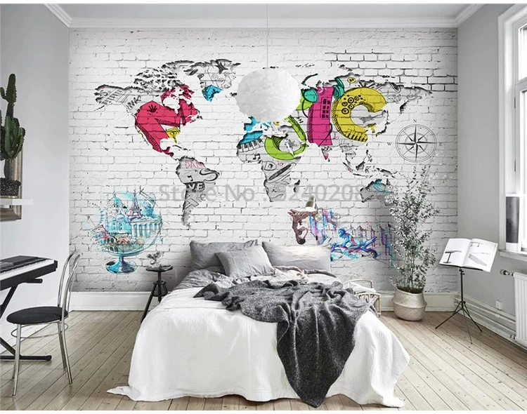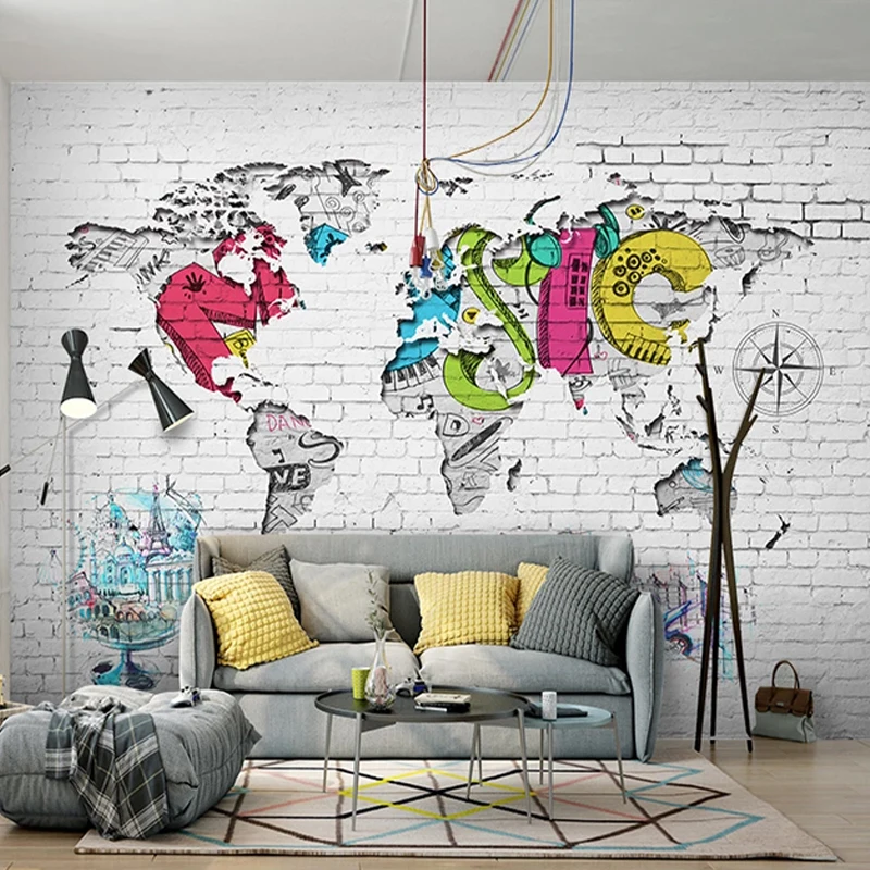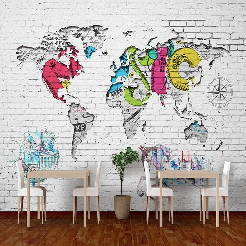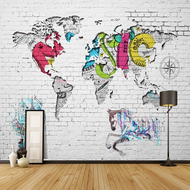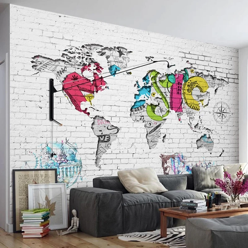 3D настенные фрески на заказ, Современная Карта мира, граффити, кирпичные обои для гостиной, детской спальни, фон-наклейка, водонепроницаемые обои