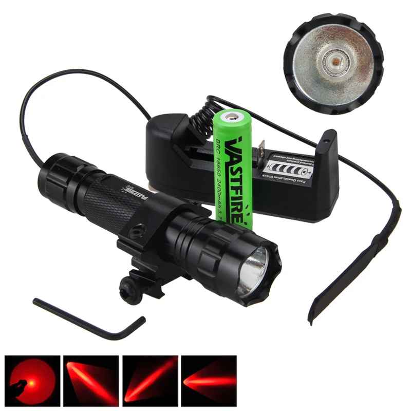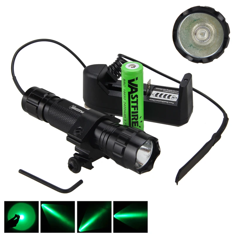 Светодиодный фонарик 501B 5000 люмен XM-L Q5 T6, белый фонарь + крепление на рельсе + дистанционный переключатель давления + 18650 + зарядное устройство