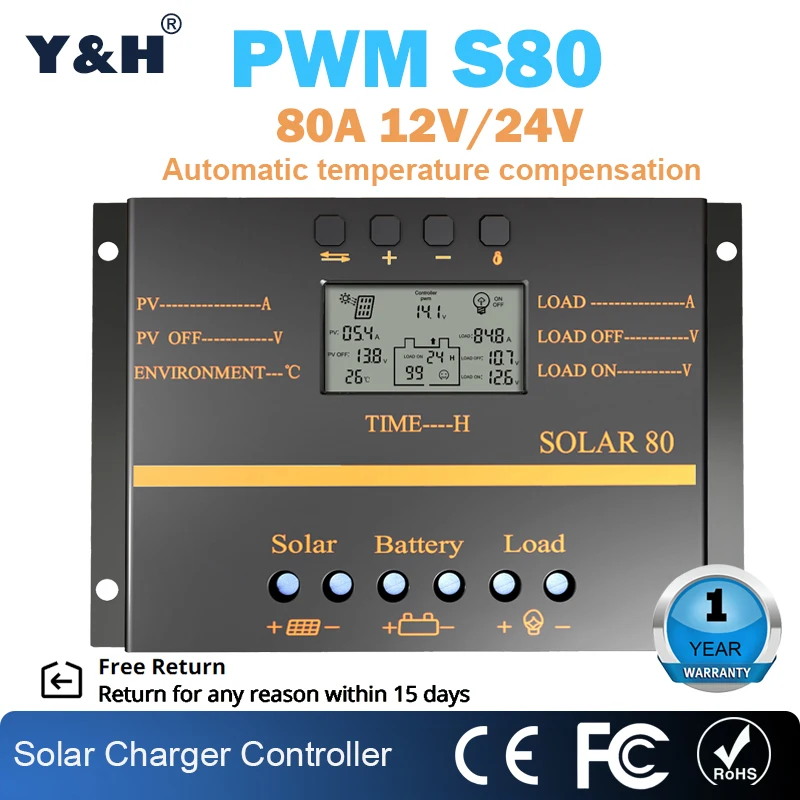 80A Регулятор солнечной панели 12V 24V Авто LCD USB ШИМ контроллер Высокая эффективность PV домашнее зарядное устройство Solar80