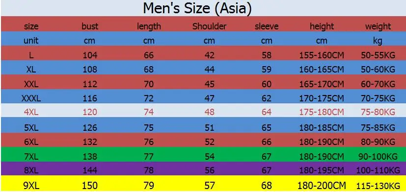 Никак не приспособлюсь к китайским размерам. Теперь наконец получил товар, подошедший по размеру. До этого никак не мог предположить, что мой размер 5XL при росте 174 и весе 82 кг!
