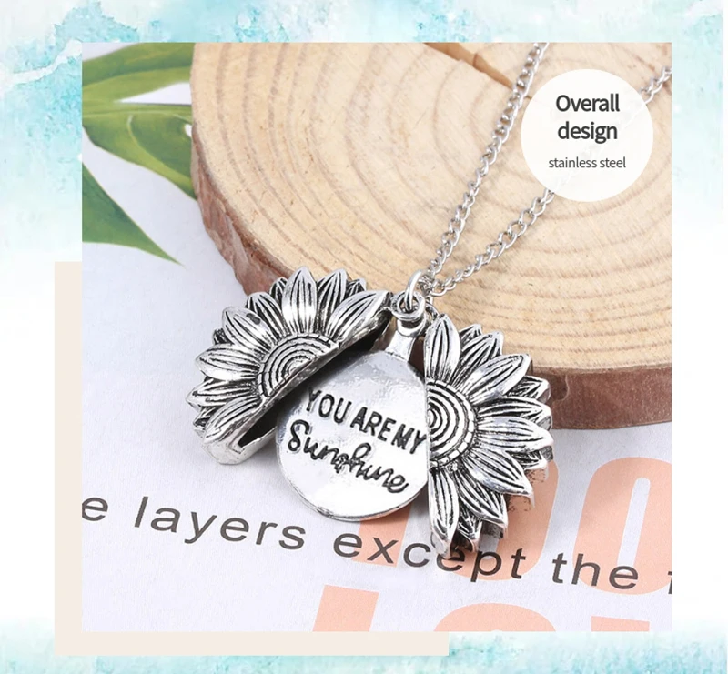 Цепочка Женская Золотая с кулоном и надписью You are my Sunshine, ожерелье с подсолнухом