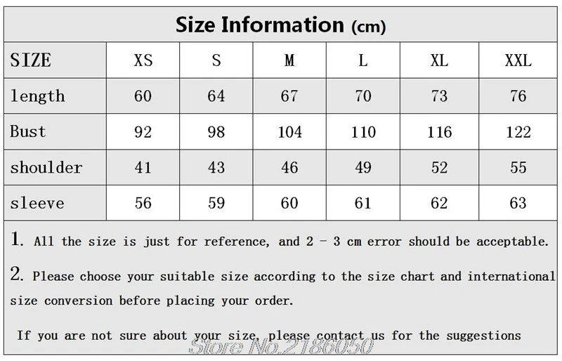 Примечание:1. Все размеры указаны только для справки, допускается погрешность в 2 - 3 см.2. Пожалуйста, выберите подходящий размер в соответствии с размером таблицы и международным преобразованием размеров перед размещением заказа.Если вы не уверены в своем размере, свяжитесь с нами для его уточнения.