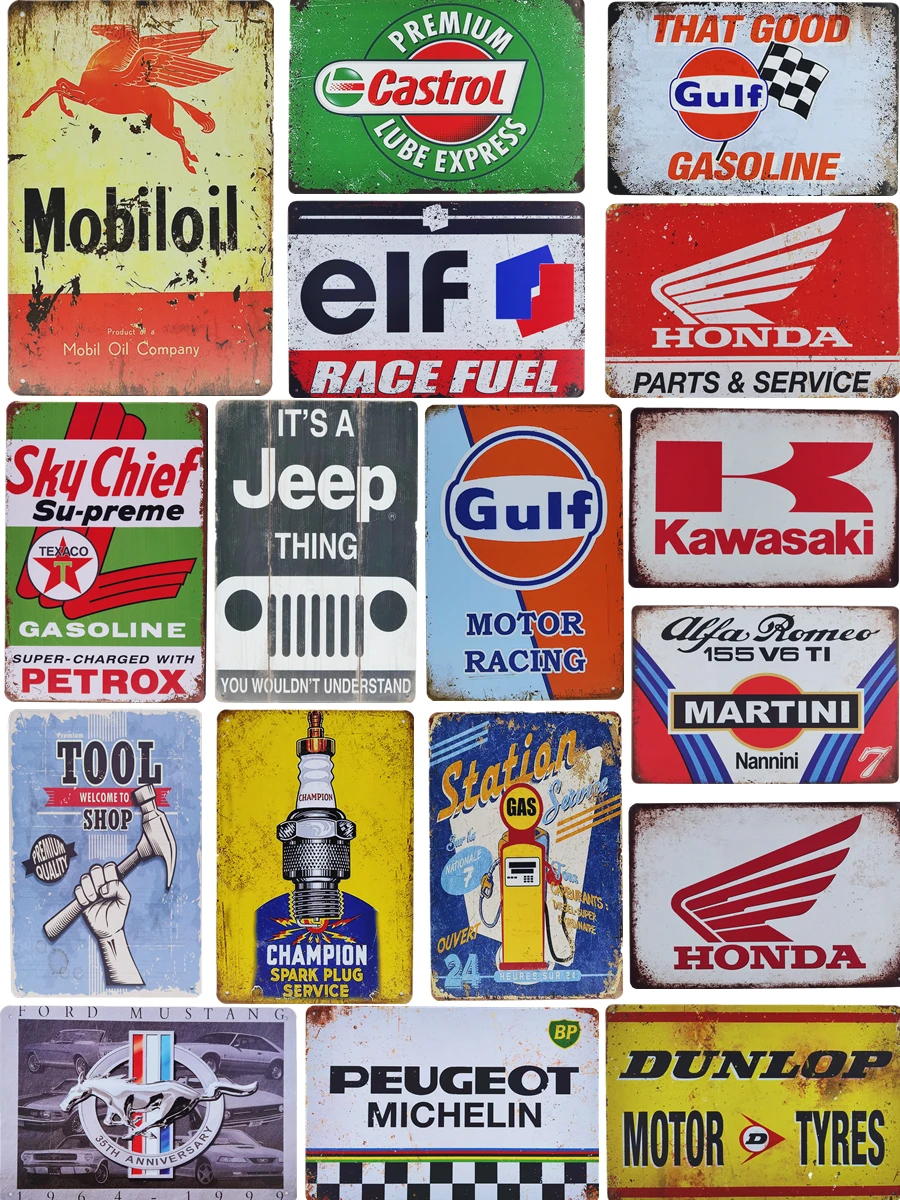 Винтажные масляные металлические оловянные знаки для мотоцикла, автомобильные шины, постер, гаражный магазин, бензиновый газ, художественные настенные наклейки, декоративная доска