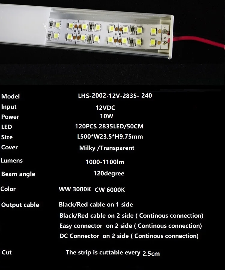 12VDC 50 см 20 дюймов адвокатского сословия СИД светильник, Диод Невидимый плоский профиль 2835 10 Вт двухрядный линия лента, 20 мм шкафа слот Линейный жесткий полосу