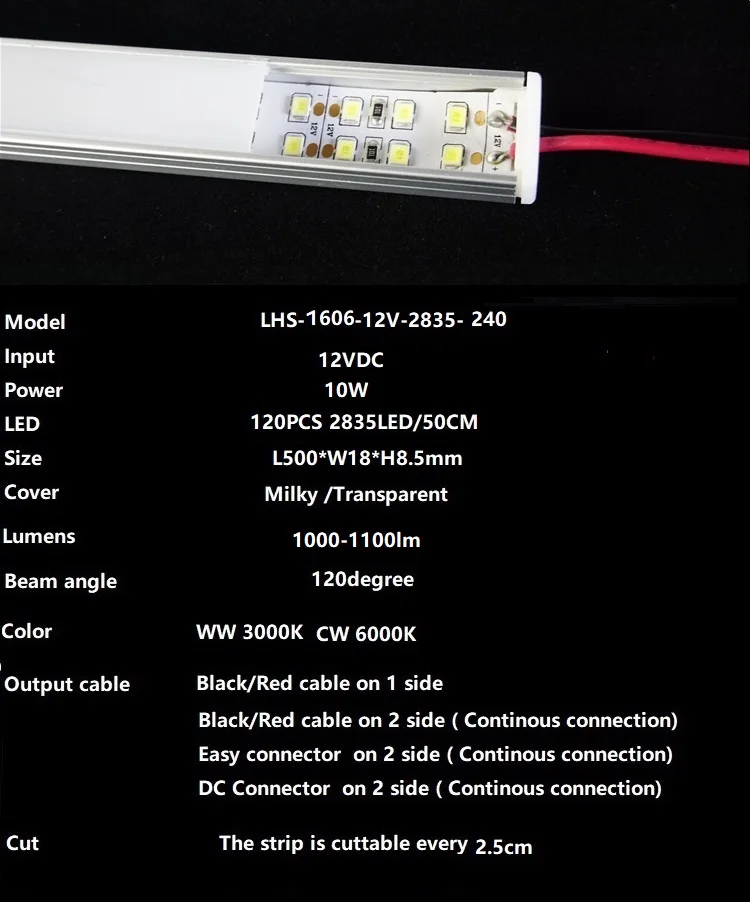 Полоса 2835 120LED/светильник (240led на метр)Мощность 10 ВтВход 12VDCЛюмены 1000-1100лмCCT WW3000K, CW 6000K