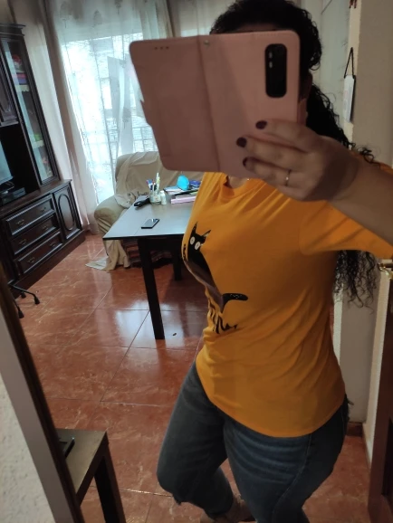 El diseño es un poco rígido, pero muy bonita la imagen. La tela de la camiseta es muy muy cómoda y esta muy bien hecha, la recomiendo 100%. Talla L de hombre con 105 de pecho queda ancha pero no grande.