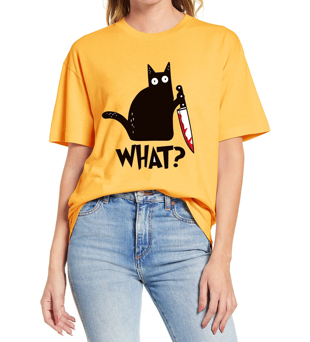 Футболка унисекс Cat What, забавный подарок на Хэллоуин, 100% хлопок
