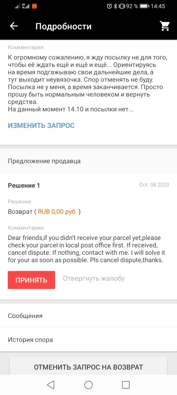 Товар не пришёл деньги вернули