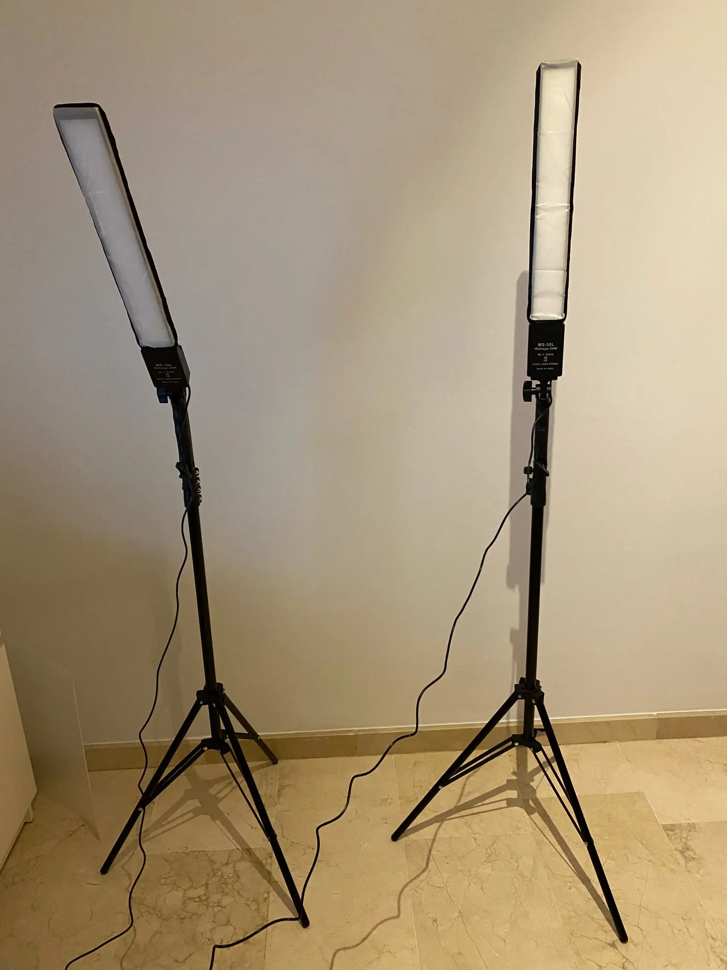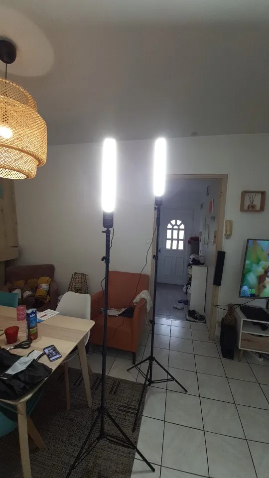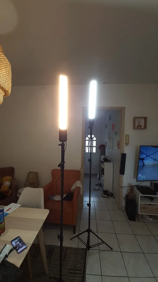 Высококачественный продукт. Груз поставляется в коробке, где есть еще 4 коробки (2 для лампочек и 2 для штативов) с очень хорошей презентацией. При распаковке деталей можно оценить, что все имеет очень хорошее качество, учитывая цену. И штативы, и их лампочки работают правильно, они предлагают отличный свет, и возможность варьировать интенсивность и тон дает много игры. Штатив можно отрегулировать на несколько высот, немного благодарен. Короче говоря, высококачественный продукт, которому нечего завидовать другим задним пакетам в размере 150/200 евро.