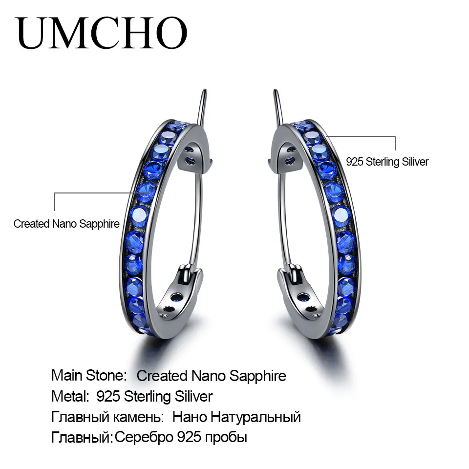 UMCHO нано-сапфир, кольца из стерлингового серебра 925 пробы, Тренд...