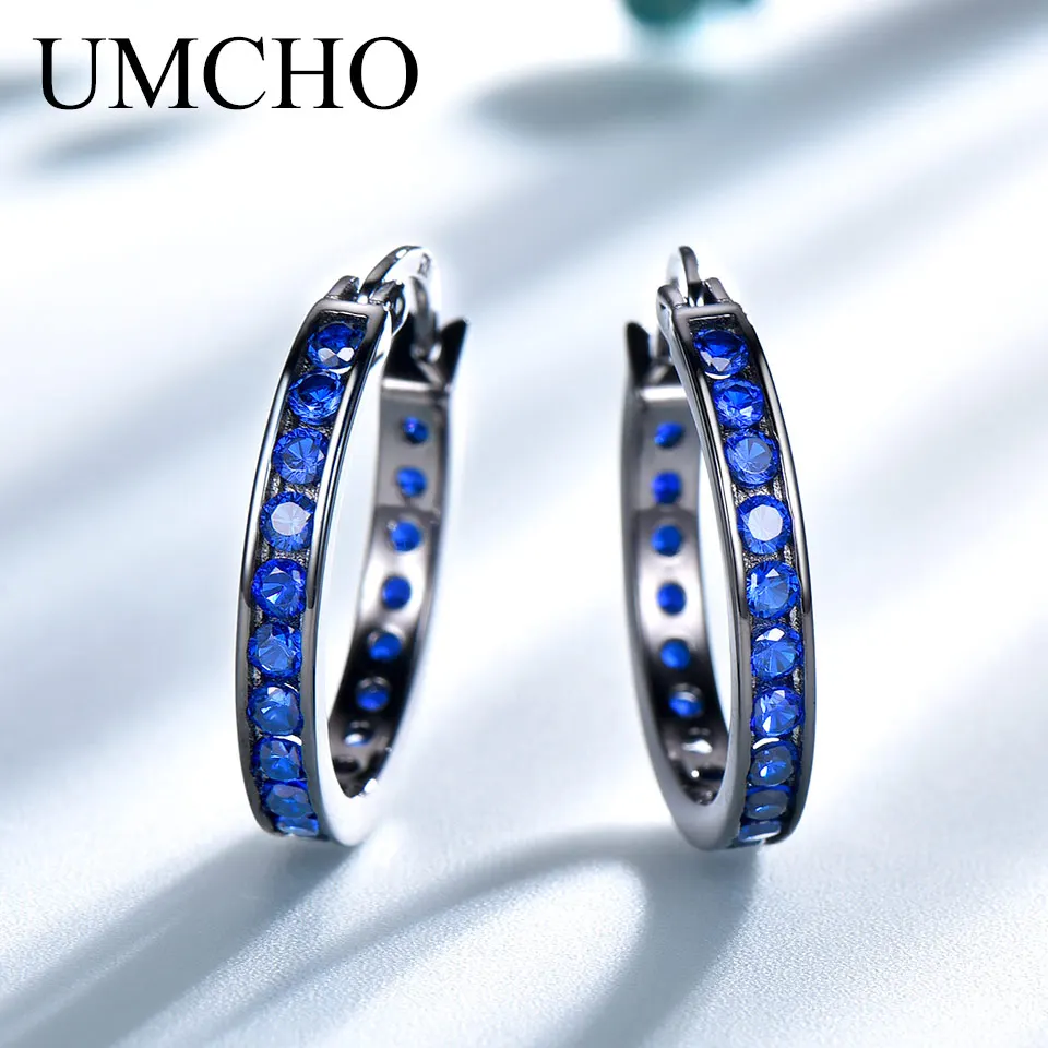 Женские серьги-клипсы UMCHO, серьги с синим топазом из стерлинговог...